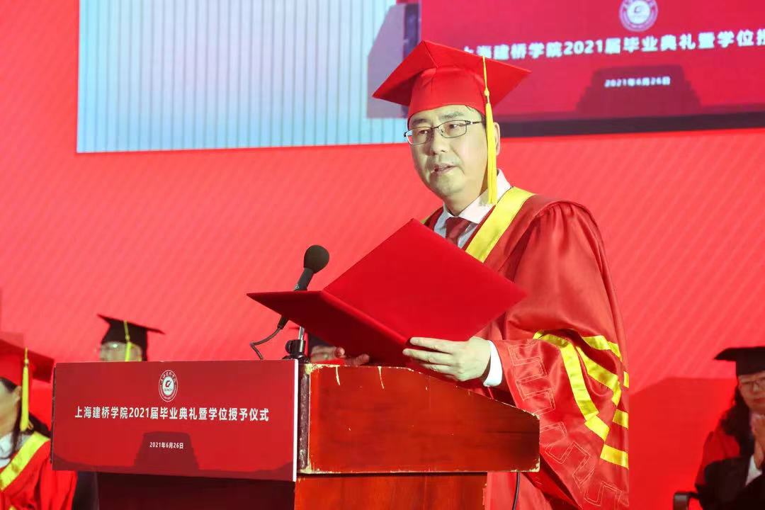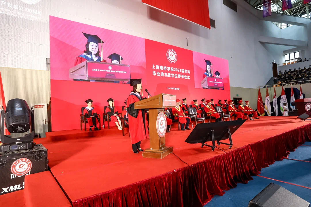 六月的细雨诉说着离别的哀愁,雨霁晴空放射出无尽光芒,便是最好的祝福。6月26日,上海建桥学院在体育馆举行2021届本科毕业典礼暨学位授予仪式。全体校领导、建桥集团董事会成员、相关职能部门和院(系)的主要负责同志、校友代表、教师代表、家长代表,以及全校2021届本科毕业生参加了典礼。毕业典礼由副校长杨俊和主持。