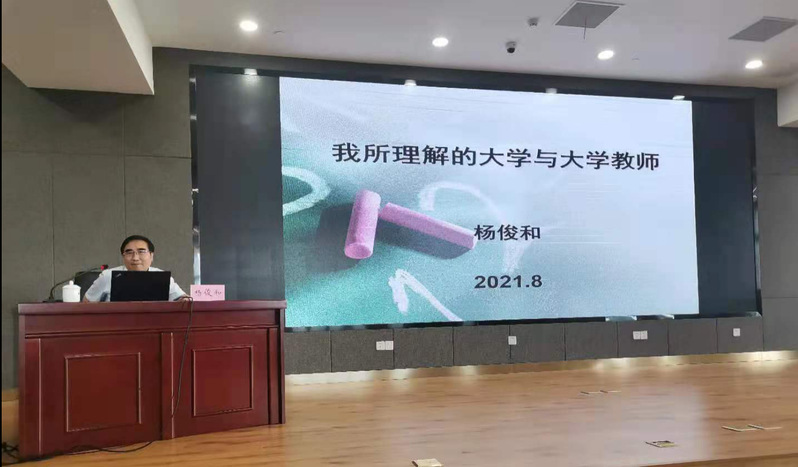 第二阶段是面向全体新进校任课教师的培训。8月30日,杨俊和副校长以《我所理解的大学与大学教师》为主题,从“大学的历史与功能”“大学教师的使命”“大学教学任务”“课程结构和教学过程”“教学水平与质量的标准及其提高”“提高教学质量的几个技术问题”“大学教师的教学艺术”等方面与新老师进行交流与分享,并对青年教师提出了“学高为师、身正为范”的殷切期望。校长助理、教育学院院长陈洁介绍了学校0BE人才培养模式。教务处处长杨茉通过对一流专业、一流课程、工程教育专业认证的介绍,分享了自己在教学建设中的体会。教务处副处长荆筱槐对学校教学管理制度做了解读,并作了有关加强课程思政建设,提升育人质量的报告。创新创业学院院长刘立华介绍了我校创新创业教育的政策和我校工作布局。教发中心白鹤老师对上海市教师教学竞赛作了解读。这些报告让新进校任课教师了解了学校的教学管理制度,对学校“核心素养、能力本位、成果导向、持续改进”的人才培养模式有了一定的了解,对学校提升教学质量的思路和路径有了认识。