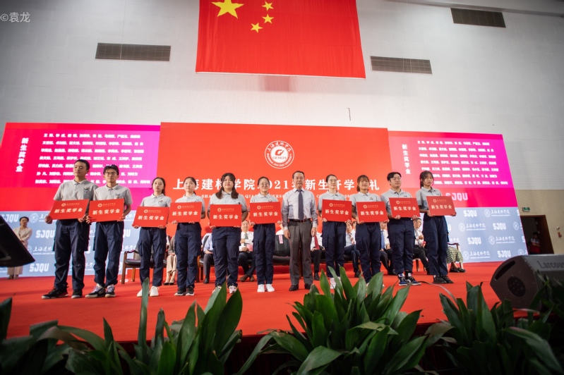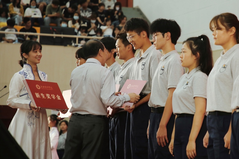 典礼上,周星增董事长为2021级新生奖学金获得者颁发了奖学金。在校生代表19级网络与新媒体2班高洁、教师代表艺术设计学院院长葛洪波、新生代表21级汽车服务工程2班石睿分别作了发言。
