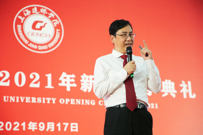 他希望同学们找到打开真理大门的钥匙,秉承求真,践行务实,学有所成、学有所获,在建桥这个新的人生驿站里实现自己的梦想。