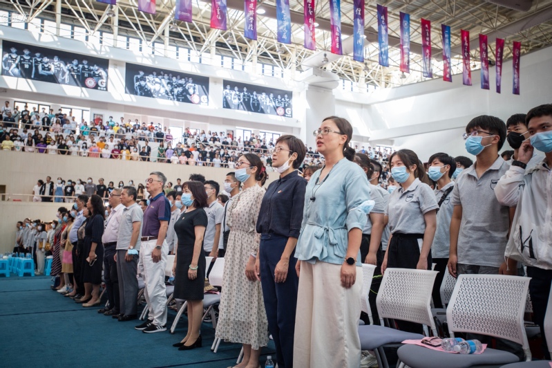 今年开学典礼设有体育馆主会场和多个实况转播分会场,校领导、教师代表、辅导员代表、在校学生代表、全体新生参与典礼。副校长陈伟主持典礼。