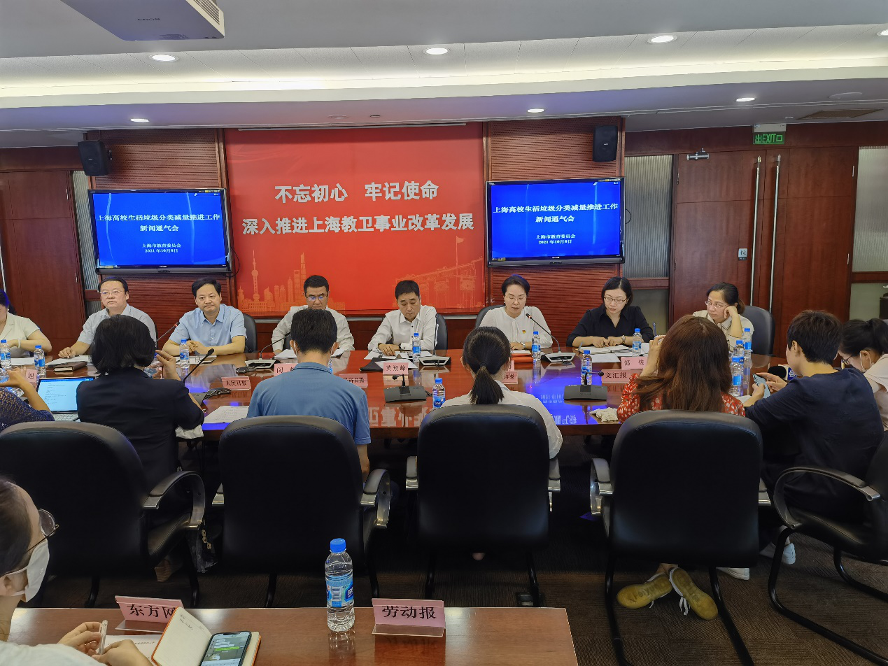 10月8日,上海高校生活垃圾分类减量推进工作新闻通气会在上海市教委举行,市教卫工作党委副书记、市教委副主任闵辉出席会议并讲话、上海市教委学校后勤保卫处处长张旭对2021年全市高校生活垃圾分类工作进行了介绍与部署,我校与同济大学、上海音乐学院等3所学校在会上作了垃圾分类工作开展情况的汇报。
