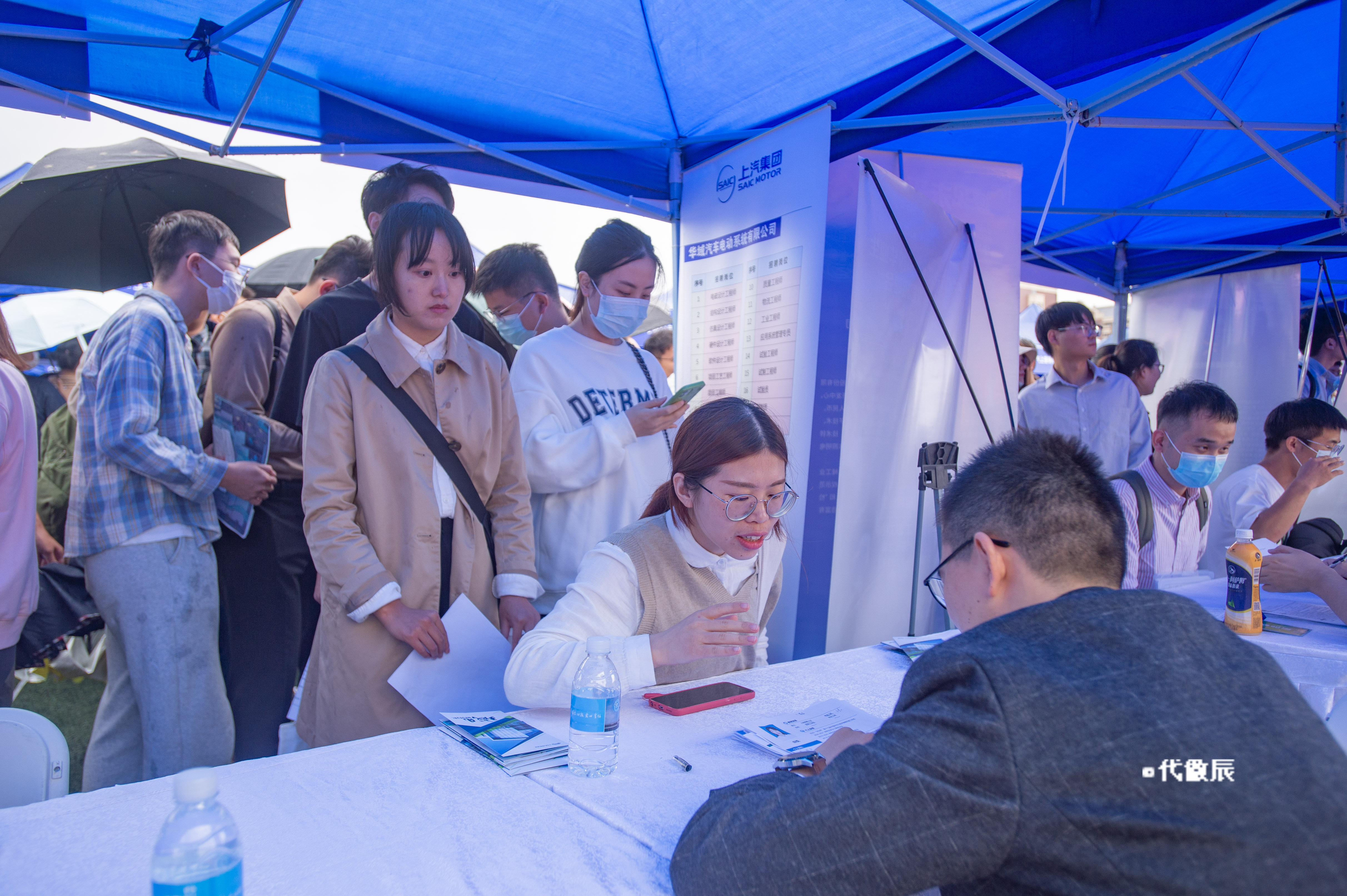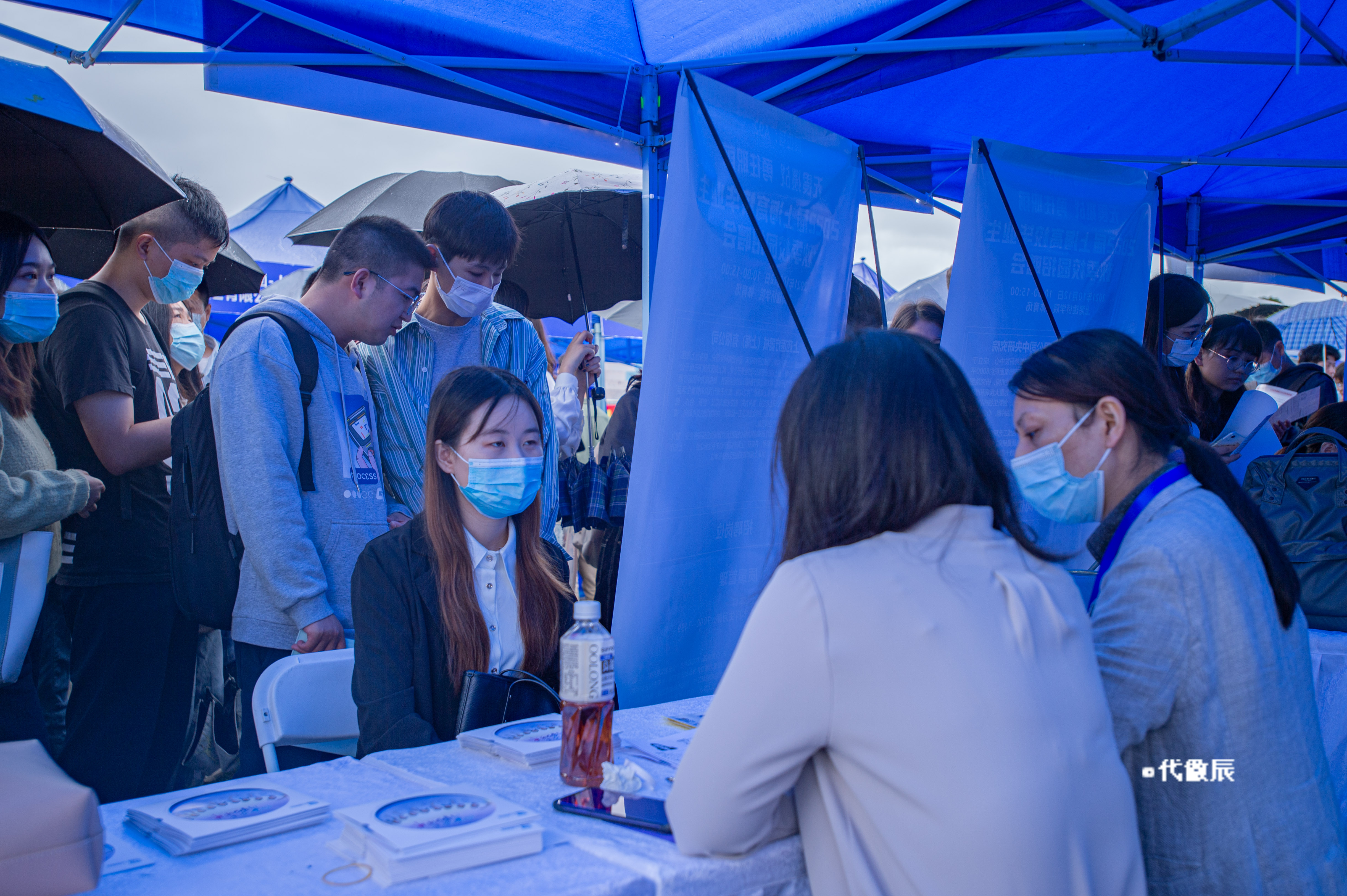 10月12日,线下大招聘,风雨也无阻,2022年应届生的校招早早“位”你而来!当天,名为“无畏挑战 勇往职前”的2022届上海高校毕业生秋季校园招聘会在临港新片区举行。尽管天公不作美,但中国商飞、上汽通用、上港集团、上海电气集团、上海医药集团等980家用人单位均进场招聘,提供岗位2800余个,招聘需求达25000多人。面对秋招良机,沪上14000余名应届学子,纷纷走进上海建桥学院体育场积极应聘。