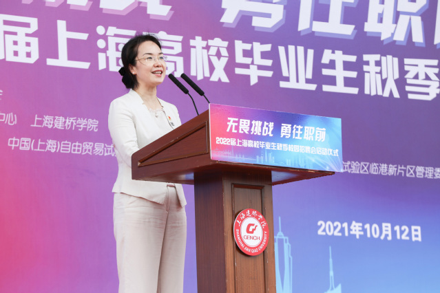 作为人才供给侧,高校也正根据用人单位需求引导大学生在校期间调整专业学习方向,将就业磨合期提前到在校就读期间。位于临港新片区的招聘会东道主上海建桥学院,成为民办本科教育转型发展的标志性学校,也是本市“促进就业先进集体”。据学校副校长陈伟介绍,建桥学子就业率和签约率始终稳定在98%和90%以上,留沪就业学生占比已超70%,长三角地区就业学生占比更是超过85%。2021届该校毕业生5200余人,就业率略高于往年,达98.75%。