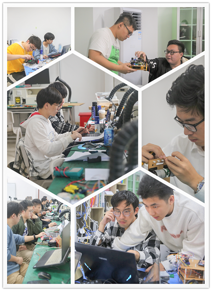 我校本届竞赛的组织筹备及培训工作由信息技术学院与机电学院共同负责完成。我校自3月底,全面展开赛前培训指导工作,主要包括竞赛及历届赛题分析、仪器仪表的使用、数字/模拟电路分析及应用、功率电子技术、传感器技术、图像识别技术、单片机电路设计分析与应用以及激光切割机的使用等。培训后,竞赛队员们的理论和实践能力都有了显著提升。竞赛筹备期间,学校领队信息技术学院教师展召敏和机电学院负责教师陈虹一起讨论了竞赛经费预算申报、清洁人员的申请、餐饮保障、竞赛宣传海报及条幅制作、电子器件的筹备等方案,并按照预设日期,圆满地完成了一系列工作。竞赛期间,恰逢暴雨和寒潮来袭,但这些没有打击到同学们的参赛热情,指导教师们也按照预先分配的工作安排,有效保障了学生的餐饮和电子器件供应。