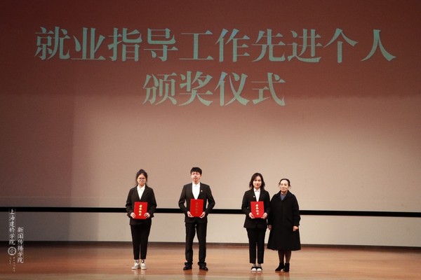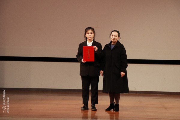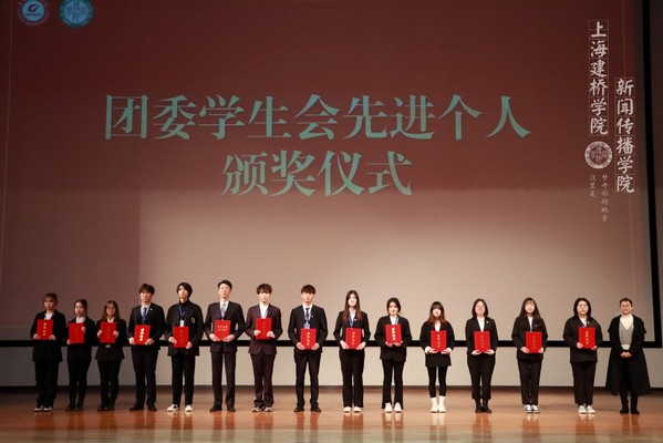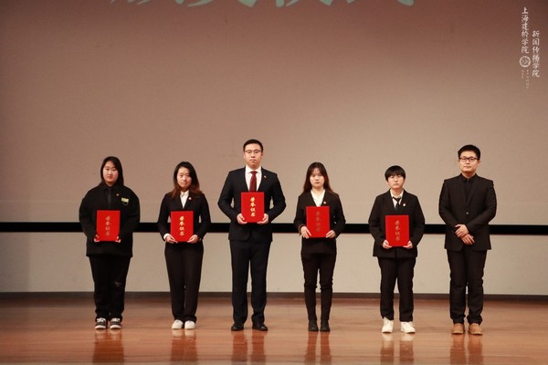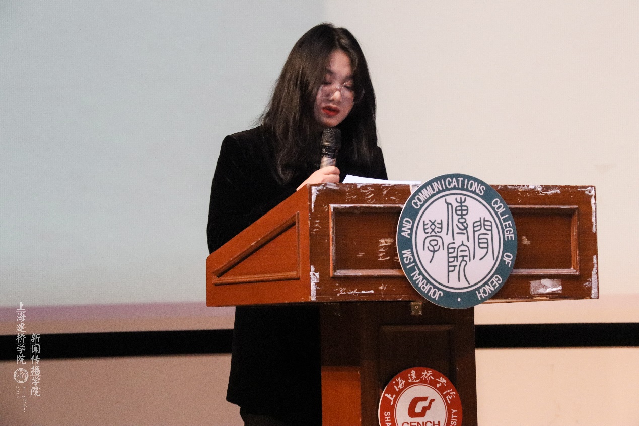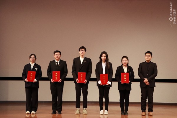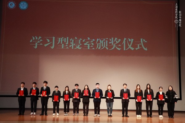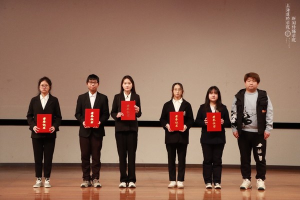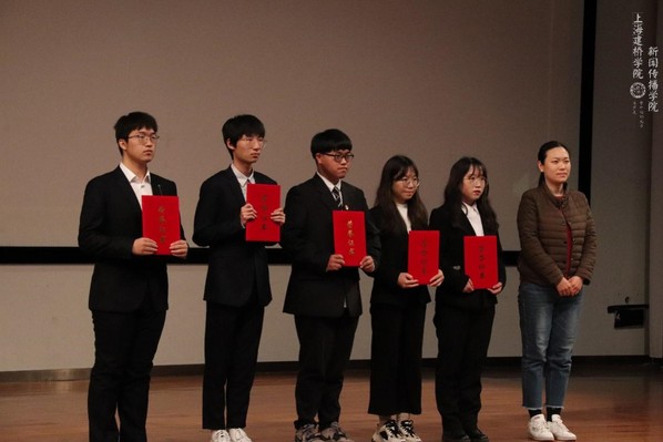吴成皓副书记宣读2020-2021学年上海建桥学院新闻传播学院优秀学生表彰决定及名单,并由院领导为获奖学生及寝室颁奖。