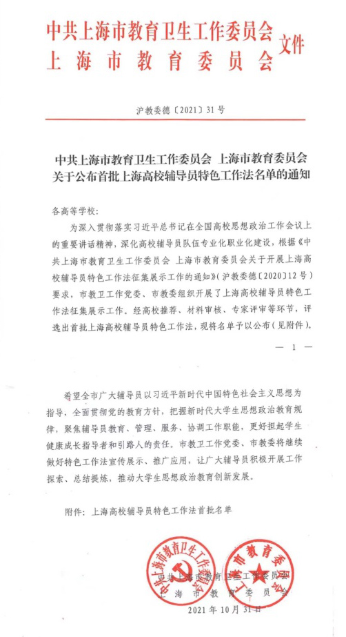 相关链接:上海高校辅导员特色工作法名单公布