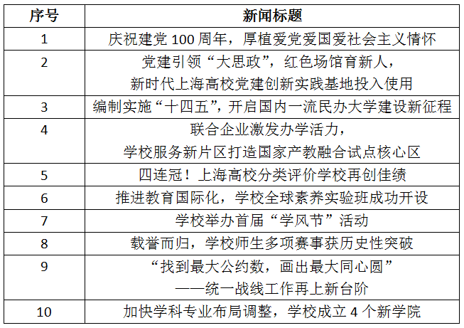 为总结回顾2021年度重要工作,集中展现党建和学校事业发展成果,增强广大师生员工强校兴国的荣誉感、成就感和使命感,凝聚学校改革发展的磅礴力量,激励全体建桥人沿着建成国内一流民办大学的奋斗目标奋勇前进,现推出“上海建桥学院2021年度十大新闻候选名单”。