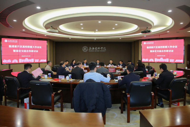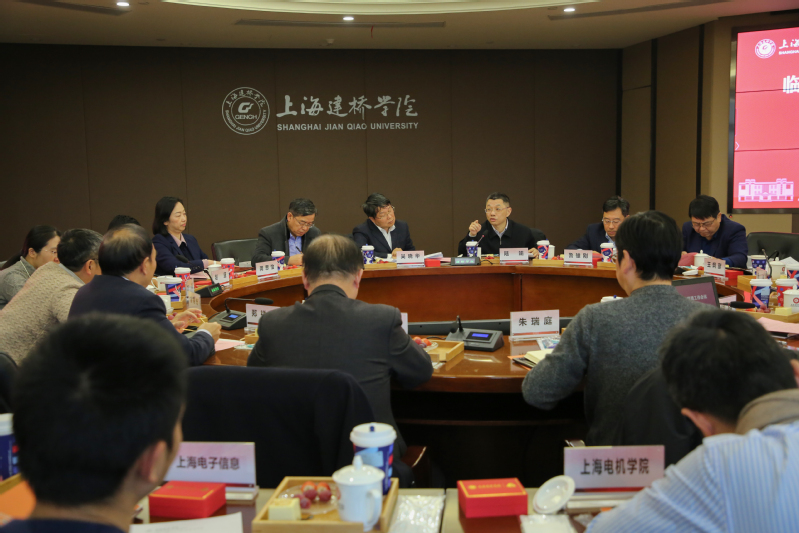 1月14日下午,临港新片区高校联盟工作会议暨深化交流合作研讨会在我校举行。临港新片区党工委副书记吴晓华,上海海事大学校长陆靖,上海电力大学校长李和兴,上海电机学院党委书记鲁雄刚、校长龚思怡,上海电子信息技术职业学院党委书记田钦、校长赵坚,管委会社会发展处处长王炯彦、副处长方娟,以及我校全体校领导出席活动。各校学校办公室主任列席会议。会议由我校党委书记江彦桥主持。
