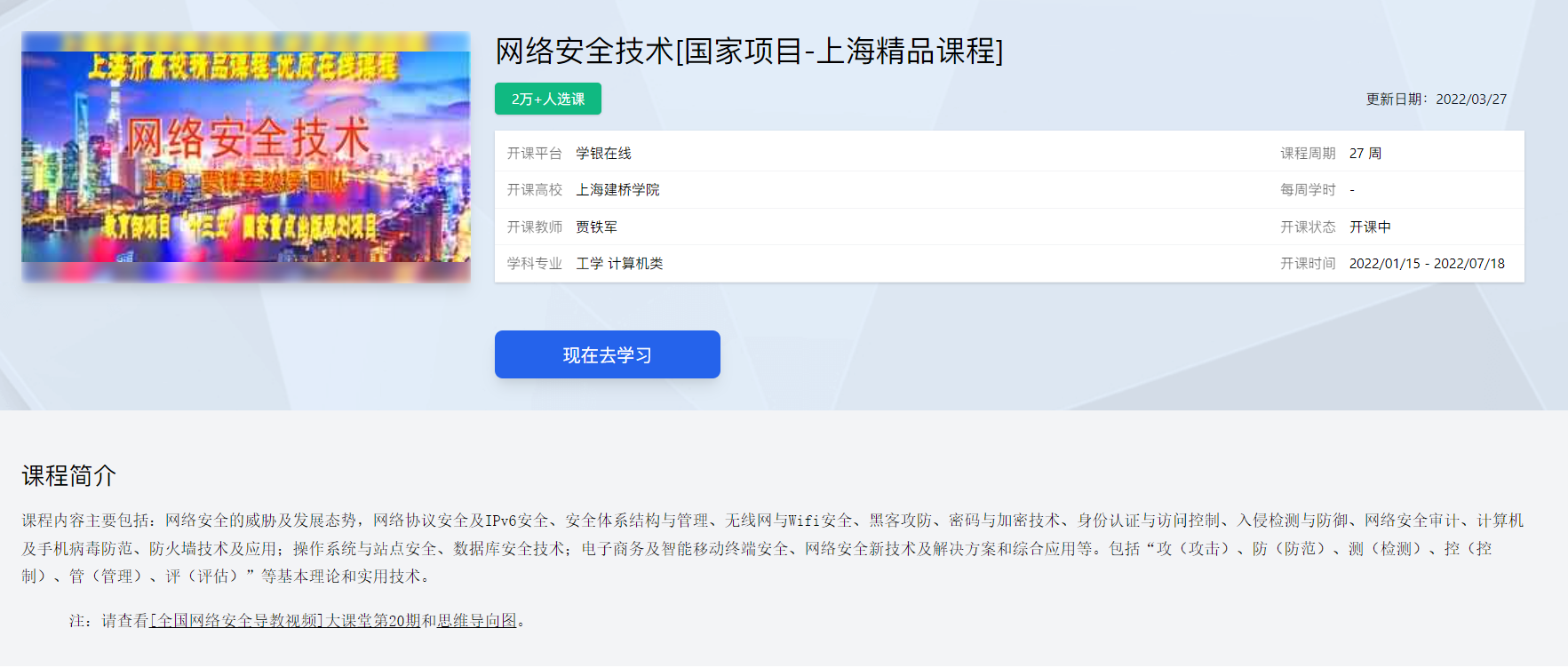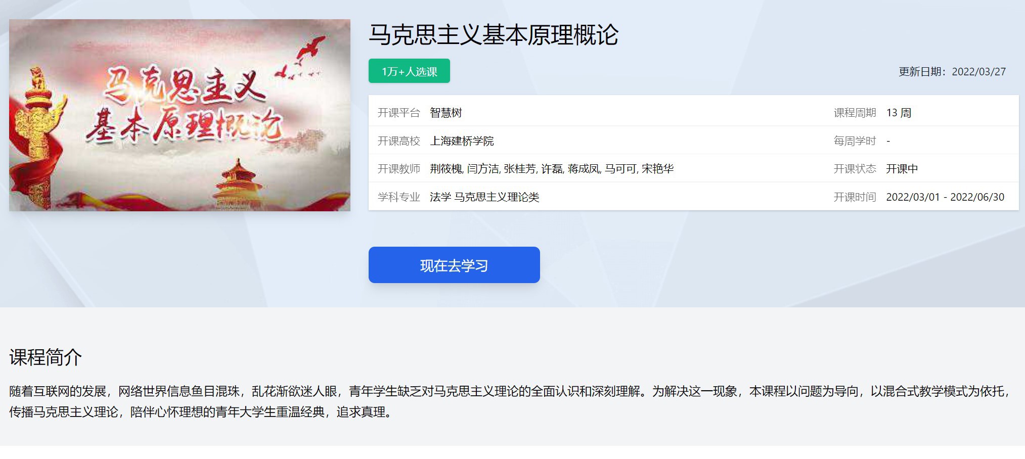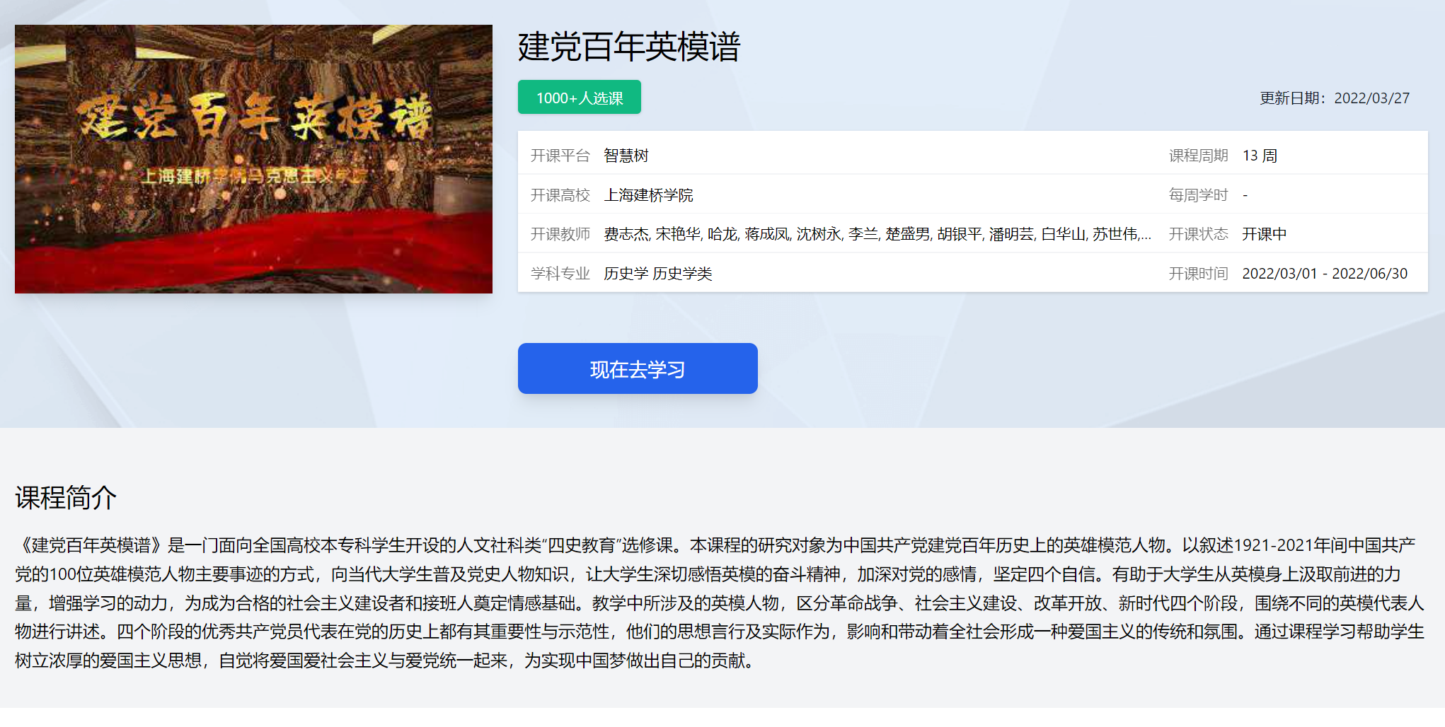 上海建桥学院共有5门在线课程入选“国家高等教育智慧教育平台”,分别是《马克思主义基本原理概论》《中国近现代史纲要》《建党百年英模谱》《奉献中国》和《网络安全技术》。五门课程选课人数已经突破4万人。
