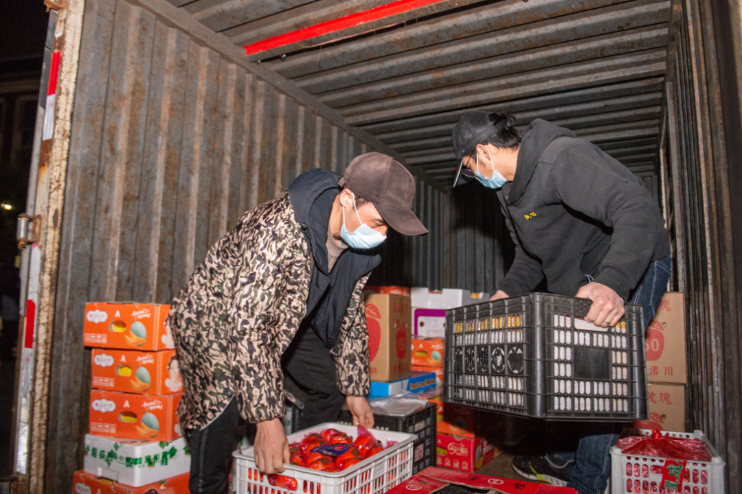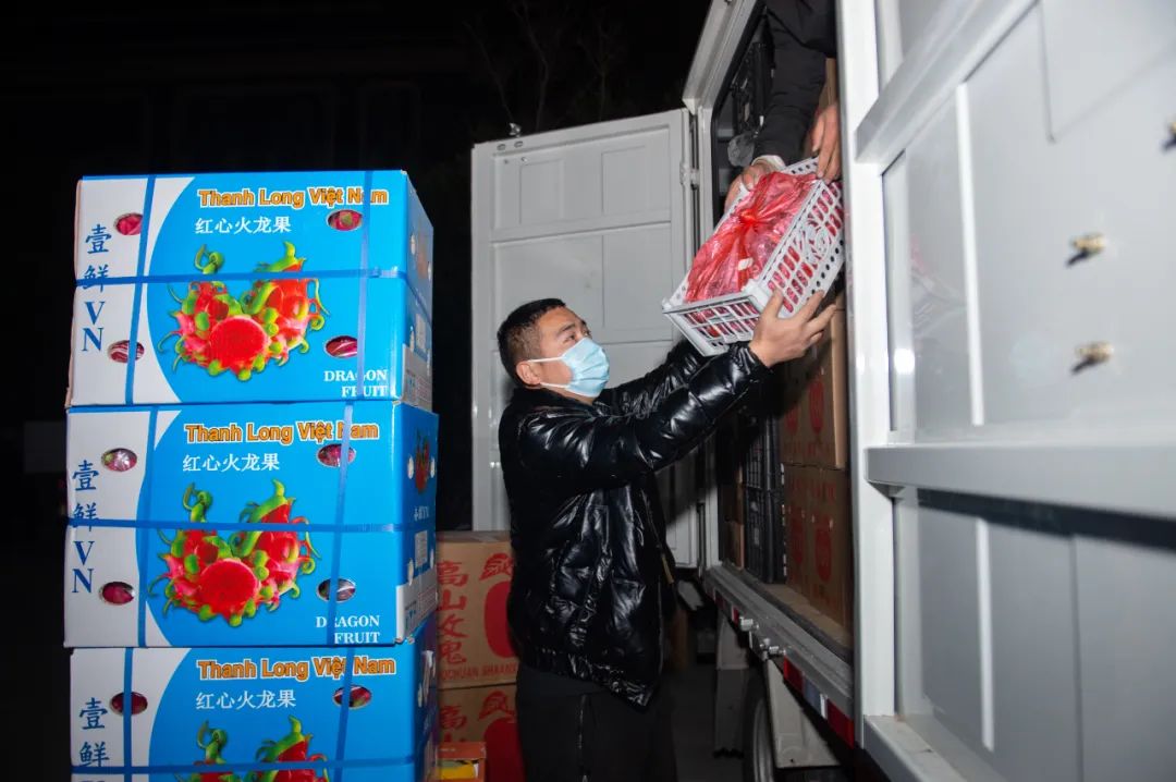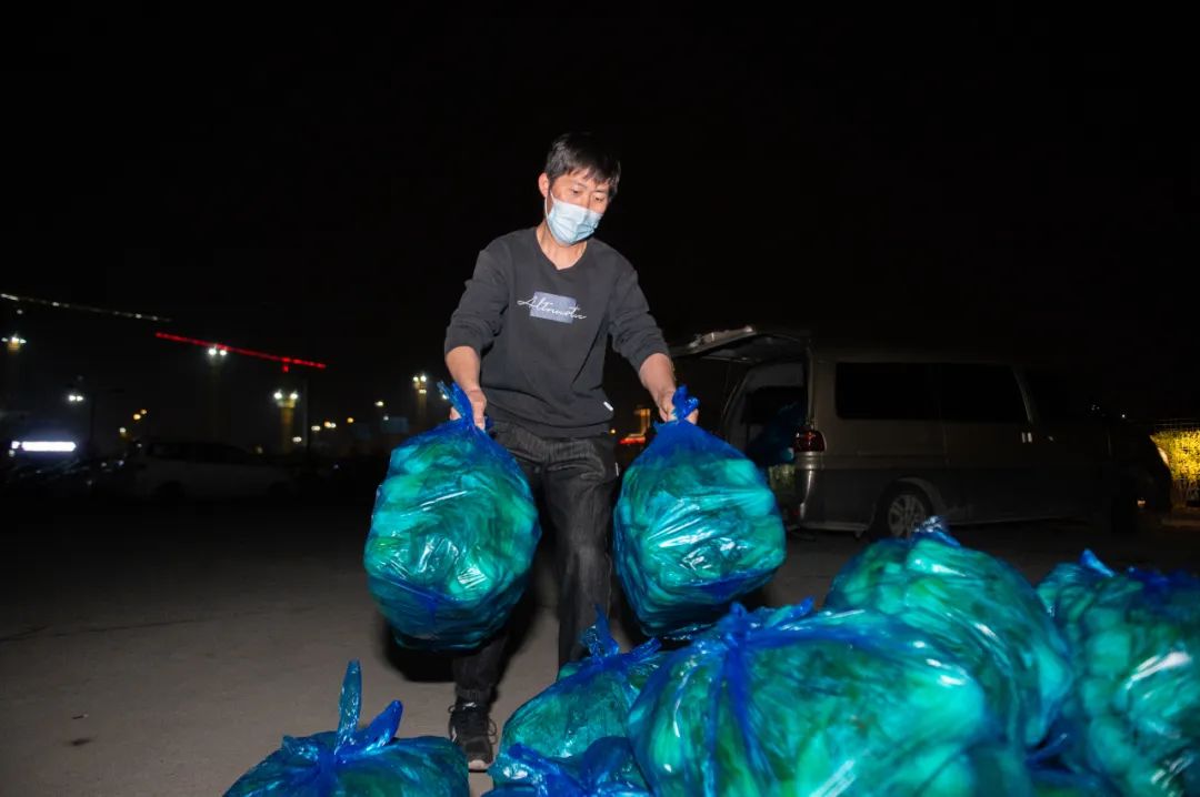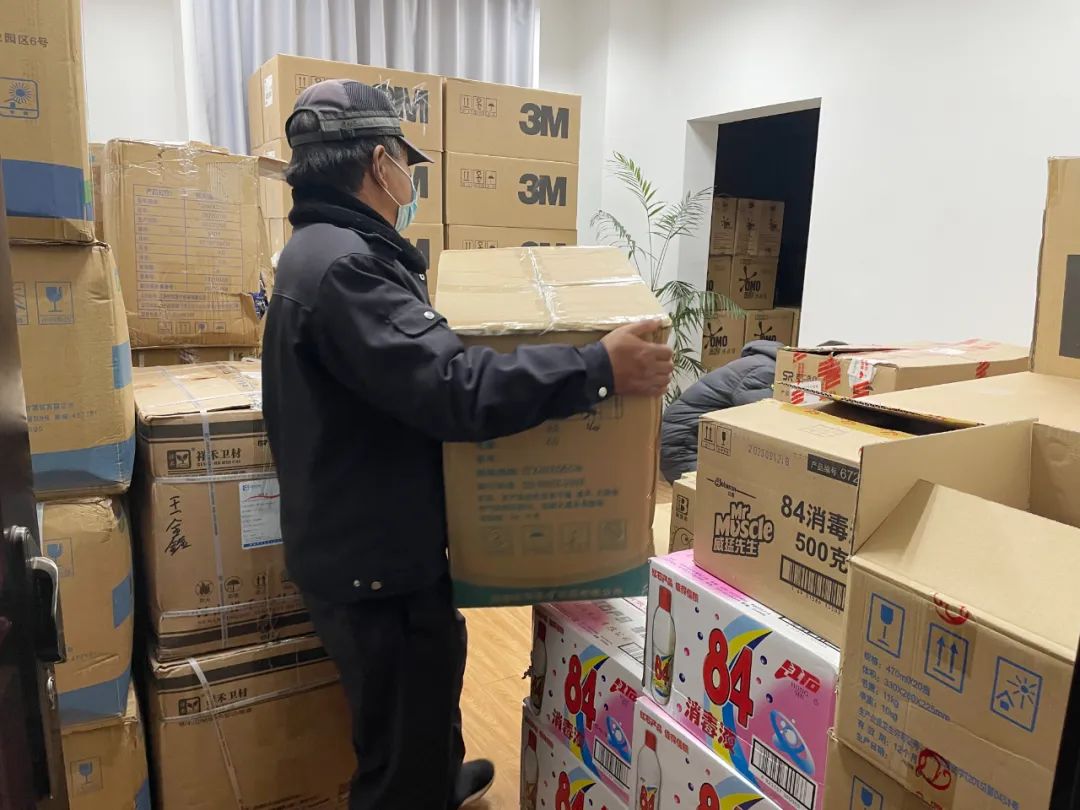 在驾校入口,会同餐饮及商业服务中心,调度蔬菜等物资入冷库储藏,同时协助将市区医疗机构的抗原检测试剂盒、核酸检测物资搬运到防疫仓库。