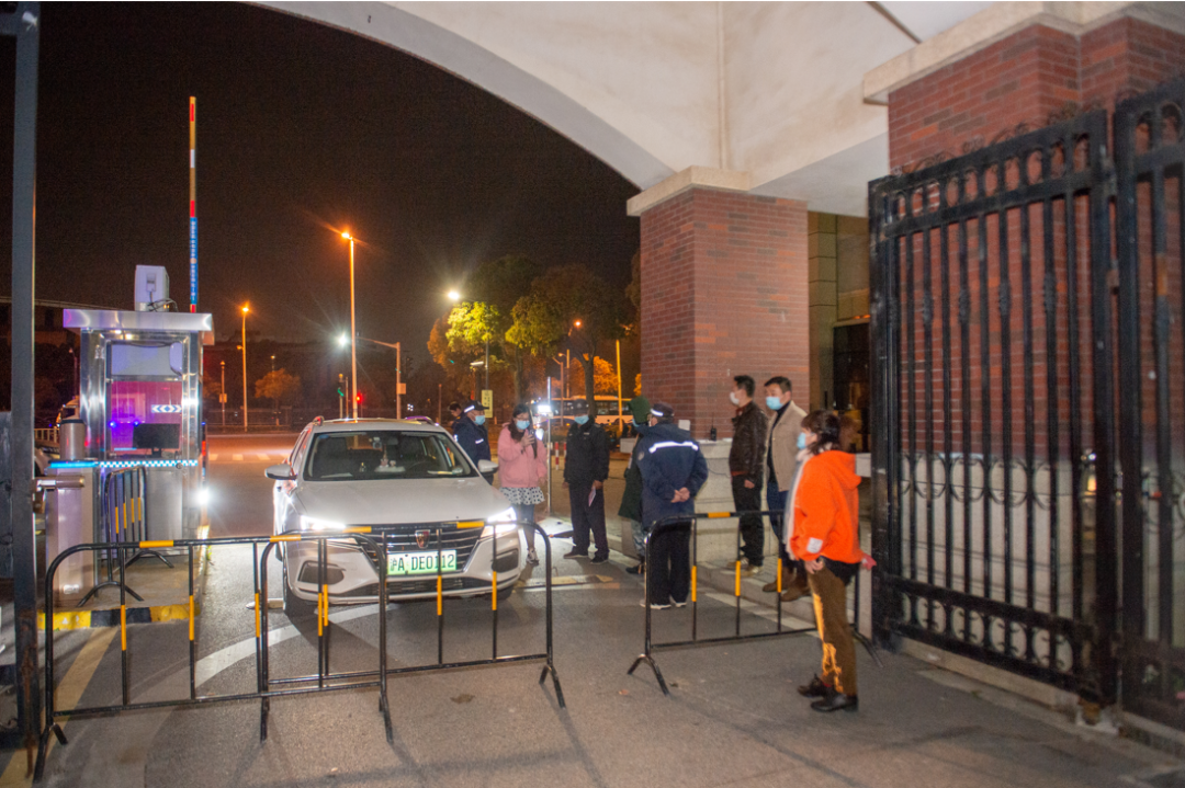 27日晚至28日凌晨4点,除了常规站岗执勤、校园巡逻,还有40余位入校参与工作的教职人员陆续从西门进校,又有几十辆物资配送车辆不间断配送至学校驾校。