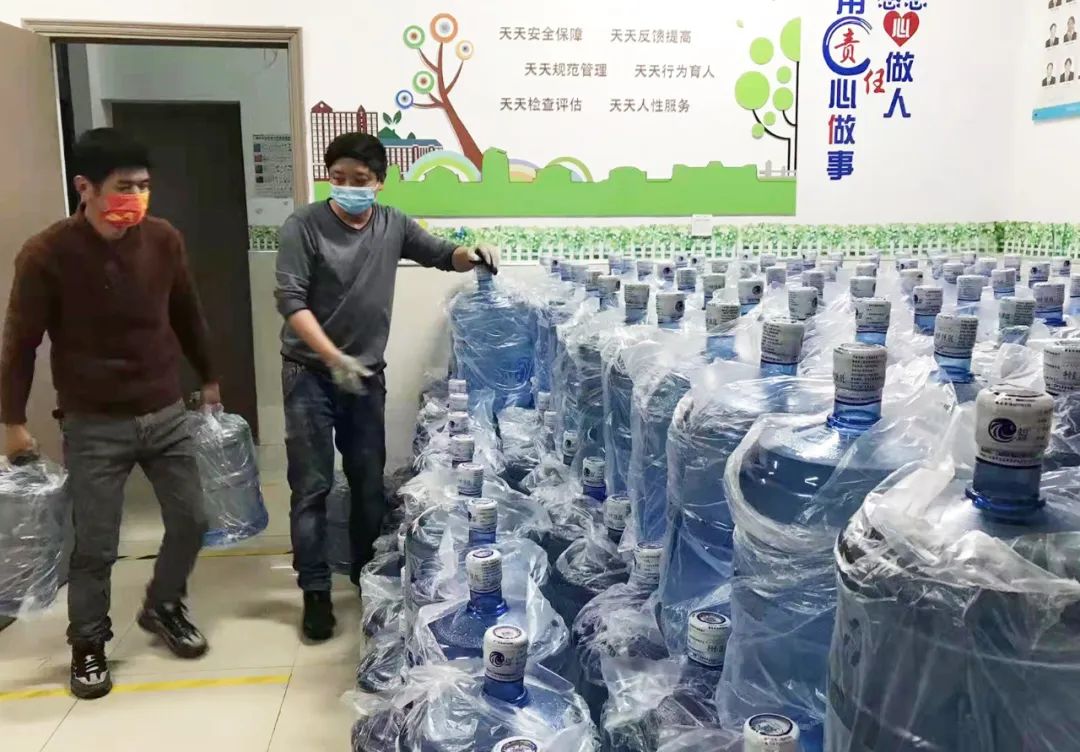 考虑到师生一周的就餐、用水保障,物业服务中心第一时间联系送水公司,连夜运送1000桶桶装水进入各宿舍园区。