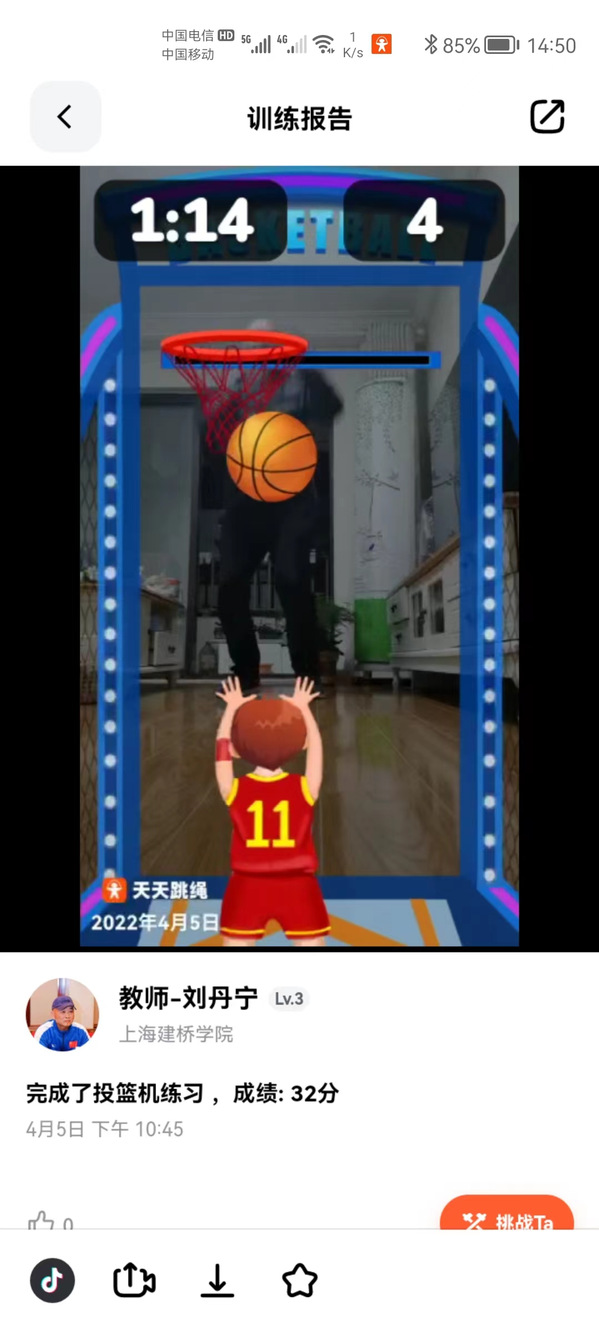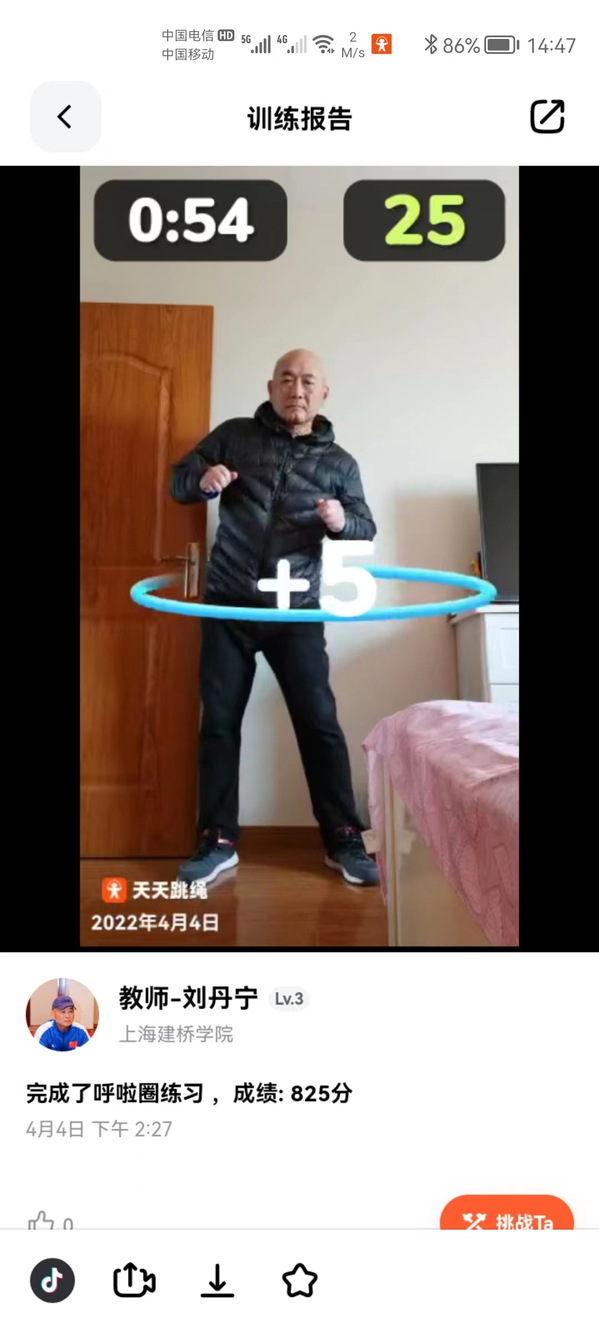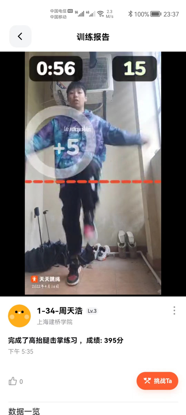 为了提升线上体育教学的质量,同时提高学生的上课积极性和兴趣。刘丹宁老师还充分利用“天天跳绳”APP平台,在自己的体育教学班级举办“抗击疫情,隔空竞技强体质,锻炼不停”健身防疫线上AI运动会,为上海战“疫”一起加油!
