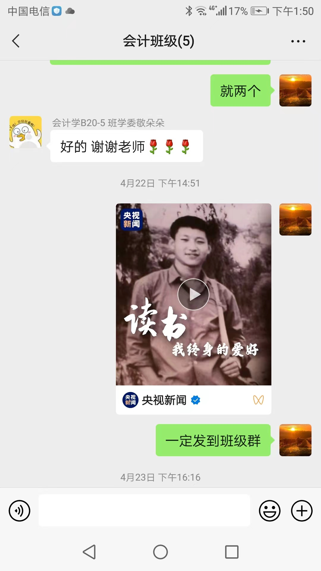 拓展教育空间 “大思政课”的教育空间是全天候全方位的,对此,朱漪老师想方设法拓展思政课教育空间,与学生进行更多范围的交流与沟通,做学生的良师益友。开展线上线下混合式教学模式,是朱漪老师拓展教育时空的基本途径。对此,他强化线上教学比重,尤其是疫情情况下的在线教育,他更是倾注满腔心血上好网课。朱漪老师既调动学生主动教学的积极性,给学生更多展示才艺的机会,放手让学生当好小老师;同时又采取组合拳方式有效制约学生在线学习,对于只在线不学习的现象,决不能放任不管。一位同学干部这样评价,“朱老师的网课教学形式多样,内容丰富,让我们很享受很满足,同学们都喜欢朱老师的网课,不像别的网课,老师一个人讲,比较沉闷。朱老师随时与我们在网课上交流沟通,启发我们理解知识,引导我们正确判断事物,我们收获很大。”朱漪老师专门设计了混合式教学课件,和最新的学习资料挂在“学习通”供学生平时阅读。为了强化教材基础知识的训练,朱漪老师专门设置了习题练习教学平台,让学生在业余时间练习,受到学生好评。同学们反映,朱老师上课既注重能力与素养的教育,也注重基础知识的训练,让我们能够全面发展,拥有过硬的政治素养。为了与学生打成一片,朱漪老师通过微信与更多学生建立学习交流关系,学生也愿意与朱老师交心,师生关系十分融洽。会计班级一位学生写了一篇较高质量的北京冬季奥运会的体会文章,朱漪教师及时给予肯定,鼓励该同学再接再厉,继续努力写出更好文章。一个班级的班长也在朱漪老师的鼓励下,带领同学精心制作了抗疫专题片,受到全部同学的好评。凡是课堂表现积极主动的学生,朱老师都是及时给予更多鼓励与指点,引导他们有更好表现。只要有好的学习资料,朱漪老师都是第一时间发到学生干部沟通微信群,要求他们及时发到班级群,让学生接受思政课以外的教学信息。例如,今年的全国阅读节,朱漪老师及时转发了习近平的“读书,我的终身爱好” ,要求同学们像习近平那样爱读书、读好书、善读书。人民日报有关反对形式主义、官僚主义的评论文章,有关揭露美国霸权主义的系列评论,特别是感人的励志故事,朱漪老师都是第一时间发给学生阅读,极大拓展了思政课的教育时效性。一位同学说,“我比较重视朱老师转发的学习资料,每次阅读,都是受益匪浅。疫情非常时刻,朱漪老师更是通过微信交流、上课劝慰、专题辅导等多种方式关心学生的成长。”一位学生说,“朱老师说经过了苦难岁月的历练,才更加懂得生活的可贵与美好,这让我一下子豁然开朗了许多。疫情防控生活其实是一笔宝贵的生活阅历,让我们悟道了许多生活真谛。”