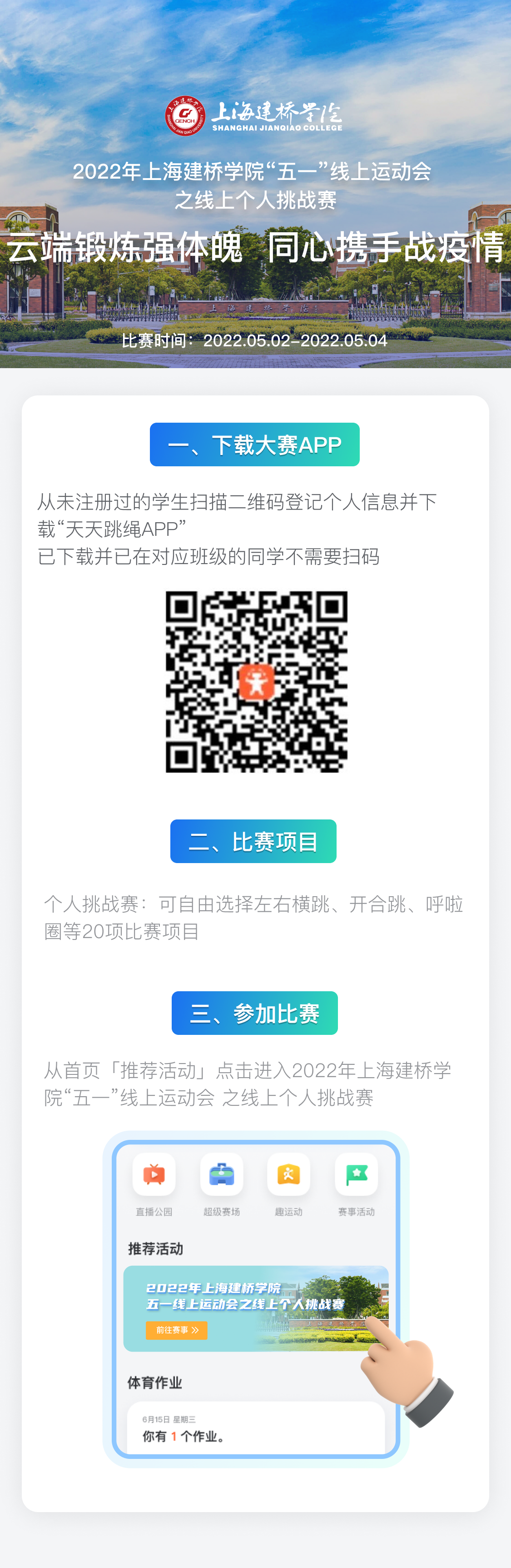 (一)活动平台:所有活动均在天天跳绳APP(手机应用程序)线上完成。