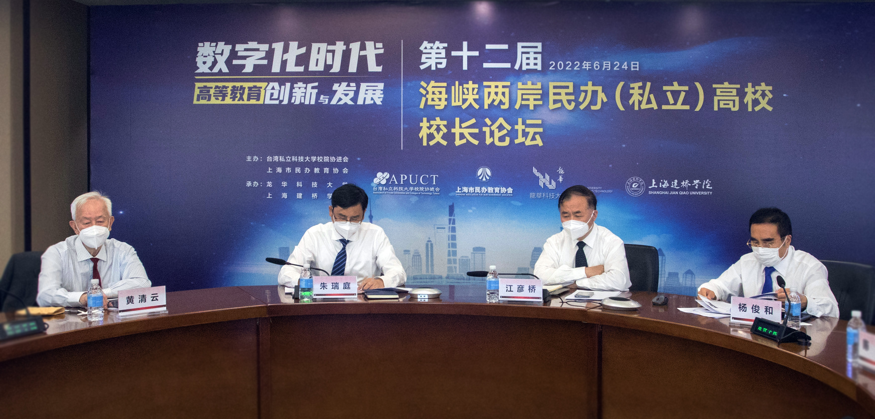 后疫情时代,民办(私立)高校在深化教育改革过程中,如何突出作为;数字化背景下,如何落实产教融合新要求,探索人才培养新模式?6月24日,第十二届海峡两岸民办(私立)高校校长论坛以在线会议形式于上海和台湾两地同时举行。本届论坛由台湾私立科技大学校院协进会、上海市民办教育协会联合主办;台湾龙华科技大学、上海建桥学院联合承办,邀请来自上海、江苏、安徽、云南、广东、福建和台湾地区的近100位民办(私立)高校领导、专家学者等,共同探讨后疫情时代产教融合育人,强化两岸高等教育交流合作。上海市教卫工作党委副书记、市教委副主任闵辉出席会议并致词。
