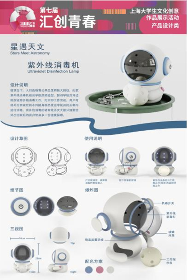 1 | 产品设计类 | 星遇天文-紫外线消毒机 | 董静雯 周秋韵 | 一等奖 | 叶明伟 |