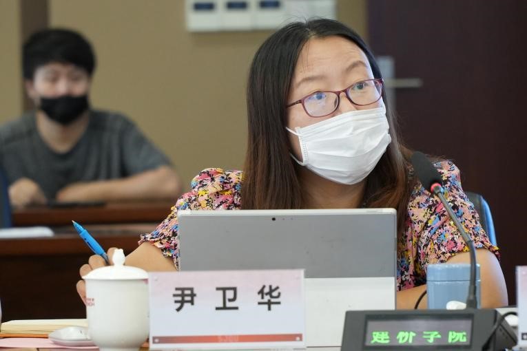 外国语学院雅思教学中心主任顾君介绍了课程设置、教师队伍、教学班和授课学生情况,并对雅思教学课程教学难度定位,线上教学设计思路和外语课程思政情况进行了经验分享。