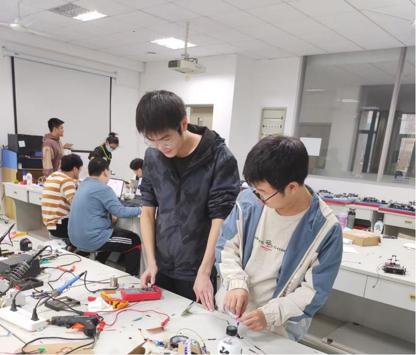 我校本届竞赛的组织筹备及培训工作由信息技术学院与机电学院共同负责完成。竞赛筹备期间,信息技术学院和机电学院负责人一起讨论了学生的公假申请、餐饮保障、监控布置、电子器件的筹备等工作。尤其这次竞赛面临着疫情的不可控因素,在竞赛前夕,学校的宿舍楼基本都被封控,学生2天不可以出寝室,5天不可以出楼。在此情况下,针对这个问题,与学校的领导进行了多次的沟通,最终大部分学生如期参加了竞赛,但是还有少部分学生不得已临阵换将。不凑巧的是本次竞赛的信息技术学院与机电学院的两位负责人都因为疫情原因被封控在家中,无法进校。面对这些问题,指导教师们按照预先分配的工作安排,保障了学生餐饮、电子器件的供应以及竞赛场地的搭建等工作。困难并没有击倒大家,反而使更紧密地团结在一起,团结一心,排除万难,保证了竞赛圆满地完成。