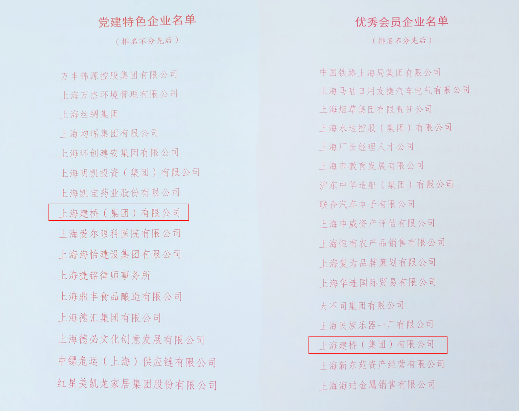 今年以来,上海企联以习近平新时代中国特色社会主义思想为遵循,在市有关部门关心指导下,各会员单位围绕办会宗旨和企业发展目标,克服疫情影响,在稳企、助企、惠企、促企等方面开展了一系列工作,取得卓有成效的成绩。上海建桥(集团)有限公司等162家单位荣获“优秀会员企业”称号,上海建桥(集团)有限公司等18家单位荣获“党建特色企业”。