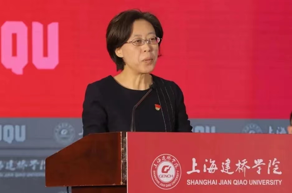 教育学院院长陈洁作为教师代表发言,她结合自身经验回忆大学时代学习生活的美好,期望同学们可以保持简单初心,培养良好品质,珍惜时光学习,积极锻炼身体,在建桥遇见更美好的自己。