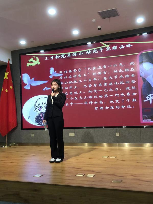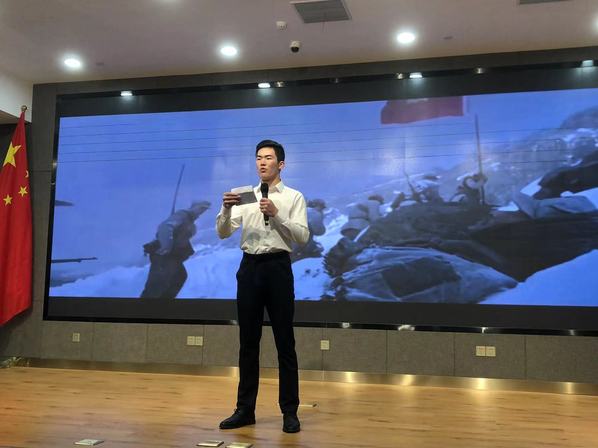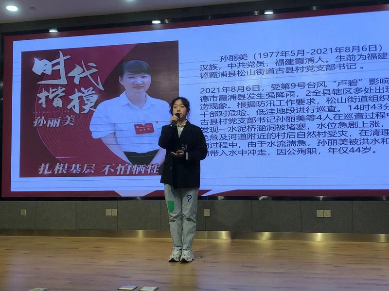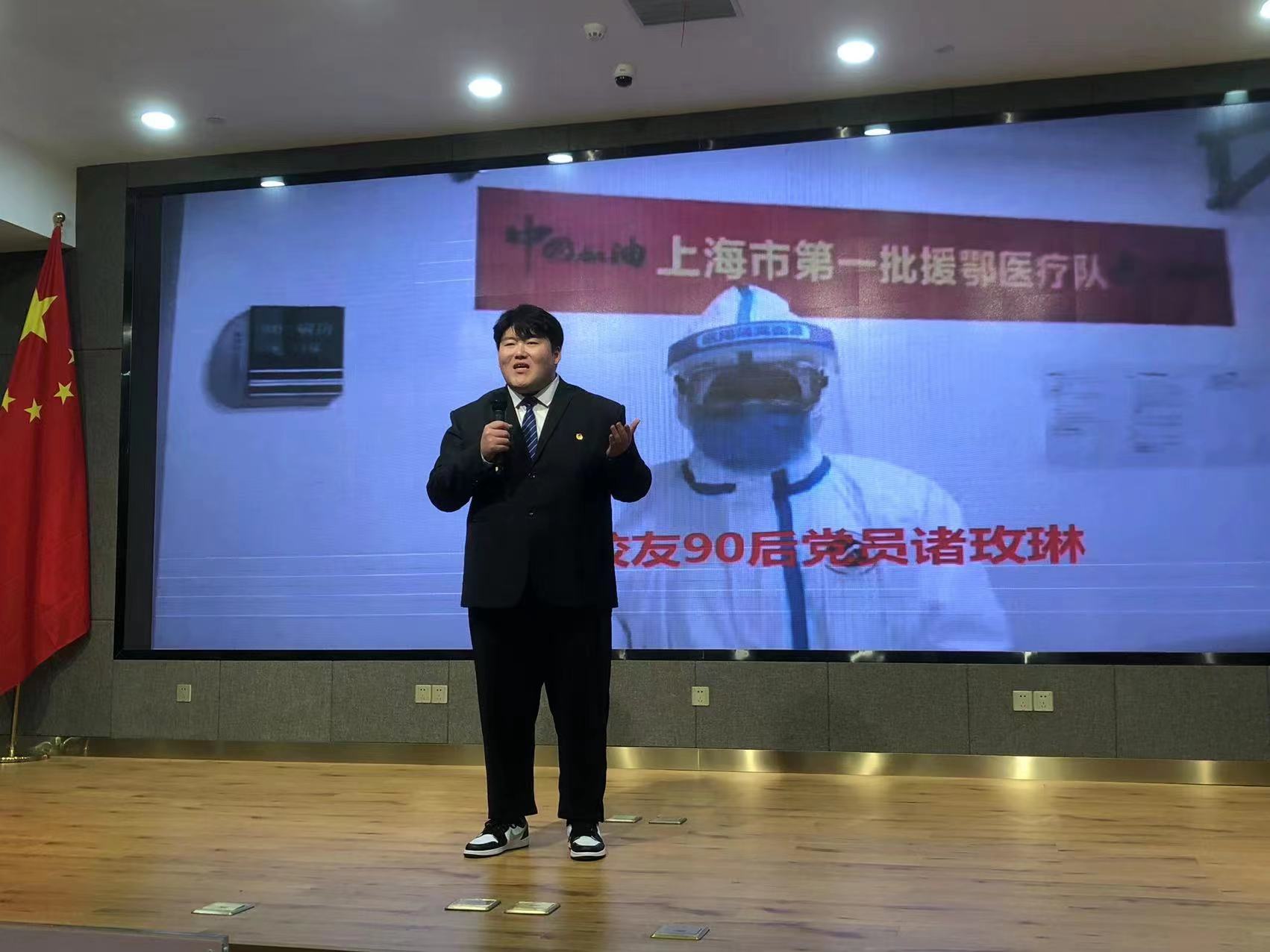 新闻传播学院的王福亮同学讲述了年轻党员肖帅在2020年的那个冬天武汉疫情最严重的时候带领24名“90后”三天三夜,突击抢建医院的感人事迹,展现了同心抗疫的中国青年用拼搏的精神、辛勤的奉献,向世界递出的“新时代青年名片”。