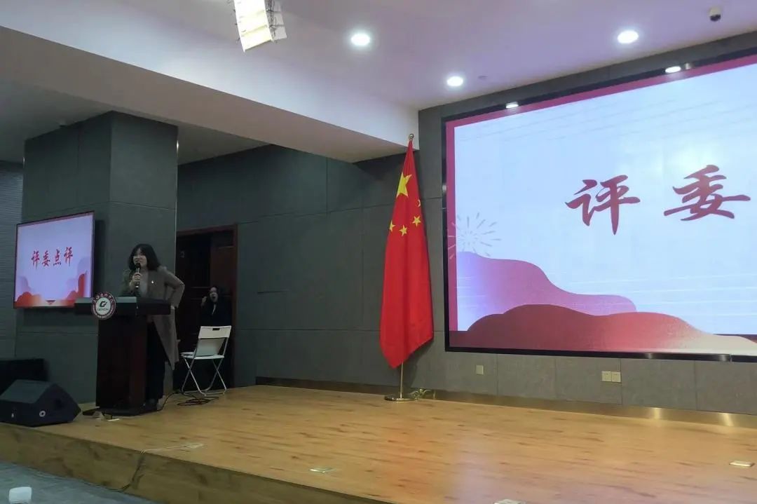 马克思主义学院院长宋艳华对选手们的演讲进行了精彩的点评。她高度赞扬了同学们对党的二十大的关注和对党史学习的热情,对同学们在舞台上的精彩表现给予高度评价。同时她也指出,好的演讲要讲好故事打动人心,很多同学的故事能够以小见大,于细微处见深情,在演讲中打动了评委也打动了现场观众,希望同学们能够再接再厉,不断进步。