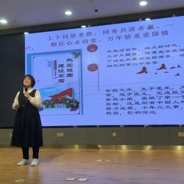教育学院的杨鑫华同学在演讲中深情回顾了从中国共产党的诞生到新中国的成立,从战火纷飞的革命年代到改革开放建设时期,一代又一代青年人用青春与热血铸就的丰碑,抒发了“我心永向党,共圆中国梦”的豪情壮志。