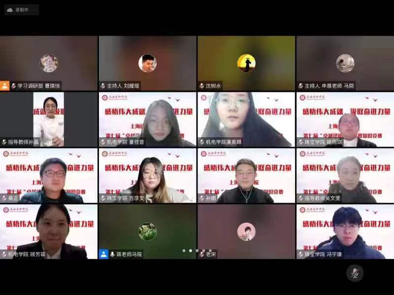 比赛现场,各参赛队伍之间展开了激烈角逐,比赛氛围紧张而又热烈。在第一环节人物图片题的比拼中,各选手发挥平稳,鲜有失误,经过动人心弦的角逐,最后7个参赛团队获得了本环节比赛满分的好成绩。在第二环节事件图片题的比赛中,每个参赛选手准备都非常充分,侃侃而谈。本环节的比赛中,来自职业技术学院、健康管理学院和机电学院的选手表现都非常亮眼,既对事件内容进行了完整概括,又对事件本身进行了精彩评论和深刻阐述,其中不乏真知灼见,完美展现了我校大学生扎实的理论基础和深厚的学术素养,受到了评委们的一致好评。第三环节“大学生讲思政课”的角逐呈现白热化的态势:机电学院顾芳菲同学《让青春在全面建设社会主义现代化国家的火热实践中绽放绚丽之花》和信息技术学院代超同学《走百年奋斗路,听时代最强音》的主题演讲,不约而同的使用了以动画来辅助演讲的新颖形式,让人耳目一新,在比赛中取得了不俗的成绩;职业技术学院的陆海宁和陈嘉两位同学带来的《强国有我,请党放心》授课内容中,别出心裁的使用了手语的形式,牢牢吸引了大家的目光;珠宝学院冯宇康、吉彦文同学《青春献礼二十大,强国有我新征程》的思政课中,向我们讲述了珠宝学子学习宣传二十大、勇当抗疫志愿者的生动故事,让所有与会者受到了深刻的教育与启迪......一个个主题演讲精彩纷呈,让人目不暇接,又扣人心弦。虽然隔着屏幕,但依然能够感受到参赛学子对比赛的投入和信心。