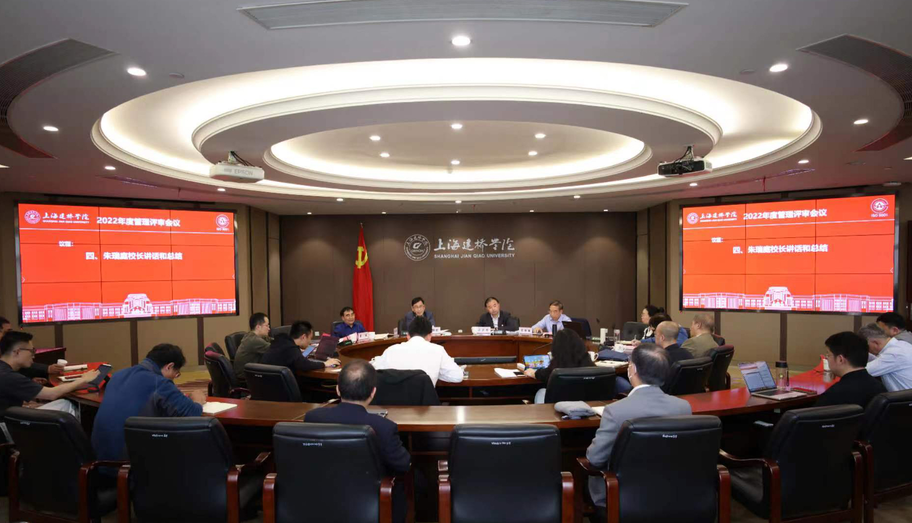 会上,朱瑞庭校长做讲话和总结。他首先肯定了持续推进质量管理体系建设的重大作用和成效,要继续坚持“以人为本、德育为先、依法治校、严格管理”的质量方针,夯实人才培养的质量,进一步追求卓越质量。朱校长强调,开展年度管理评审是一项非常重要且不可替代的工作,是对学校质量管理体系的适宜性、充分性和有效性的检验。朱校长指出,在外部环境瞬息万变的背景下,大家要广泛地抢抓机遇,降低风险点,各二级学院和部门要深入思考分析,齐心协力,狠抓落实取得实效,提高质量目标满意度。要高度重视学风、教风建设,关注学生的全面成长,落实落细立德树人根本任务,形成良好学风校风。要完善学生综合素质评价,把人才培养与临港新片区的产业发展需求相结合,推动产教深度融合、校企协同育人,努力提高学生就业率。朱校长表示学校将会深入贯彻落实党的二十大精神,结合“十四五”期间发展的目标,大兴调查研究之风,加强深入沟通交流;大力推动学习培训,提高时间管理能力,高效完成各项目标;大力提升理政能力,推动协同创新,全面推进国内一流民办大学建设。