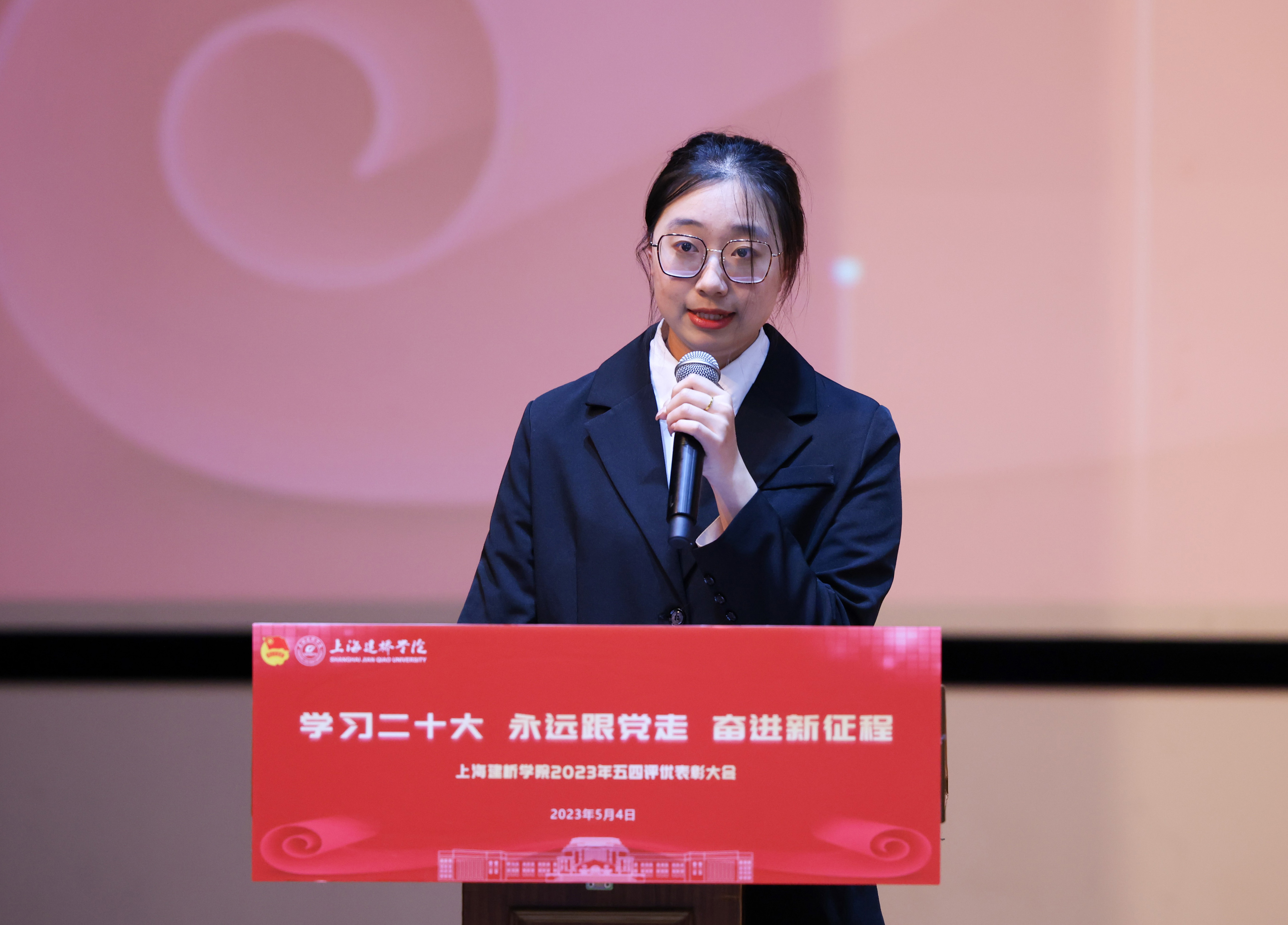5月4日下午,上海建桥学院2023年五四表彰大会在大礼堂举行。本次大会的主题为“学习二十大 永远跟党走 奋进新征程”。全体校领导,职能部门负责人、各二级学院领导及师生代表参加本次大会。学生处副处长、团委书记高雅主持会议。