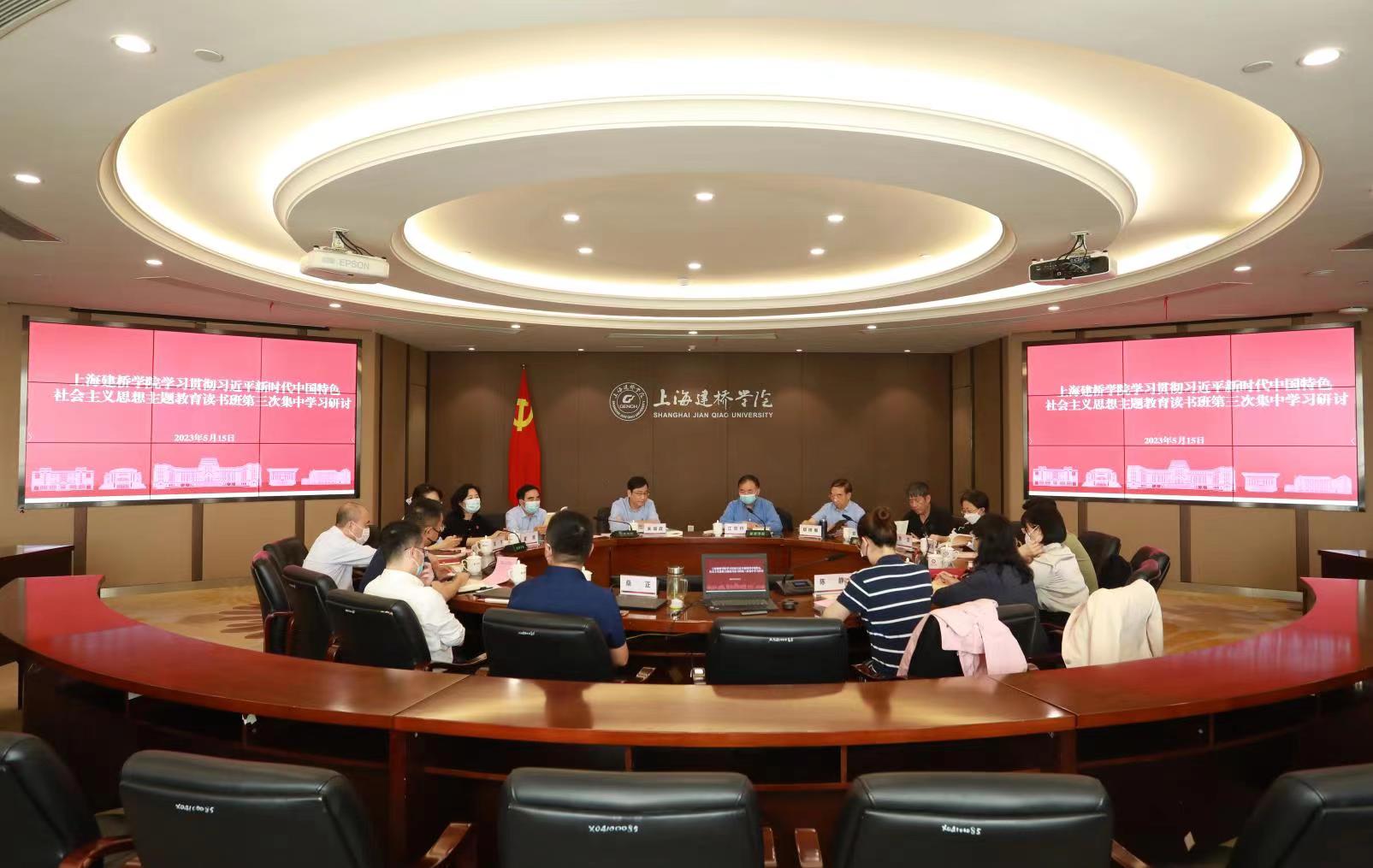 5月15日上午,上海建桥学院学习贯彻习近平新时代中国特色社会主义思想主题教育专题读书班第三次集中学习研讨在图书馆612会议室举行。校党委书记、主题教育领导小组组长江彦桥主持学习研讨。全体校领导、校长助理、党委委员、党委办公室、组织部、宣传部等负责人参加会议。