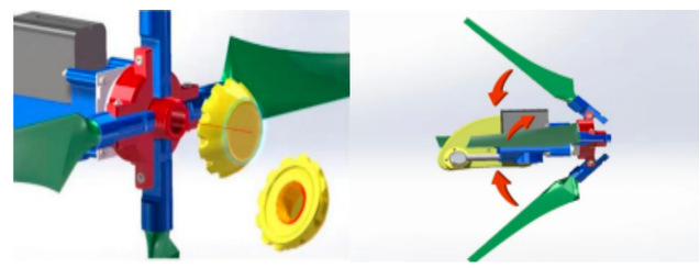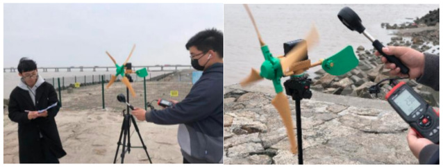 本团队自主研发了户外便携式微风发电机。本装置充分地将轻量化设计和可折叠式设计进行了有效的结合:利用可调铰链结构使叶 片可以实现无工具、无额外紧固件即可进行折叠伸展,实现了 1 分钟组装、3 分钟发电的便携功能。