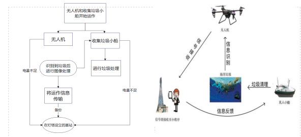 作品一套基于无人机定点巡航的图像识别水上垃圾回收装置。面对日益 增加的“漂浮垃圾”破坏生态环境的现状,针对我国水域环境垃圾回收效率低、 难度大、成本高等问题,因此亟需一项技术来解决这一现状。本项目设计了基于 QGroundControl 自动规划路线且能够抓拍识别垃圾的无人机与无人船联动进行水上回收垃圾装置。无人机上的自研云台进行抓拍识别水上垃圾后,将垃圾识别信息与位置同时传给基站与无人回收小船,随后无人小船立即前往进行垃圾的回收清理工作,基站接收到信息后进行数据分析处理并同步 至微信小程序。同时搭建了数据分析系统及微信小程序、网页监控平台,方便管 理员启动装置与查看无人设备的运作信息。同时还配备太阳能基站,白天可通过 太阳能板进行储电,可供无人船与无人机实现设备 24h 全自主无人化运作。