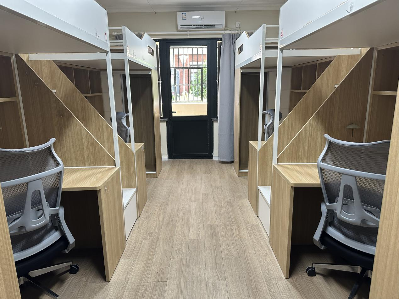 为给学生提供更好的住宿环境,配合学校“一站式社区”建设,对北五、北六等智能化宿舍进行升级改造,优化空间布局的同时,对入口大厅、走道、电梯前室、学生活动用房等进行环境提升,并完成学生椅、行李架、淋雨花洒、吹风机、置物架等多项设施设备升级。
