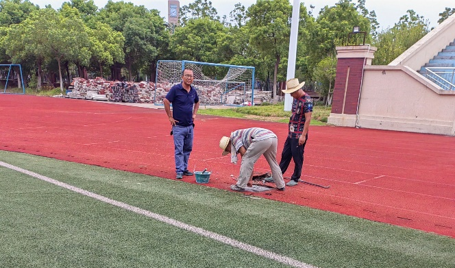 通过专项巡查,共发现校园各单体干挂大理石脱落损坏问题点位50余处运动场塑胶跑道破损下水道盖板损坏丢失等20余处,全部完成维修更换。并对北侧网球场训练墙进行粉刷维修。