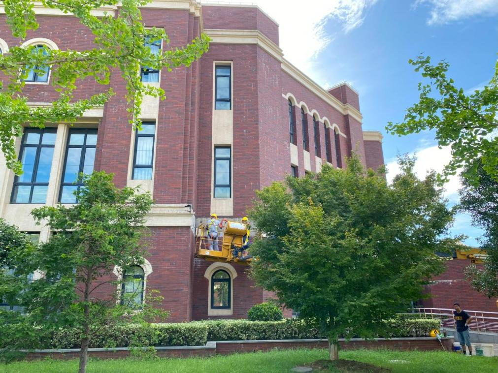 为给师生员工提供更加舒适、安全的校园环境,组织对校园40余栋单体外墙砖泛碱、空鼓等问题开展全面检查,维修各类问题点440处;完成大礼堂GRC线条改造工程,以及多功能厅两侧花池改造工作。