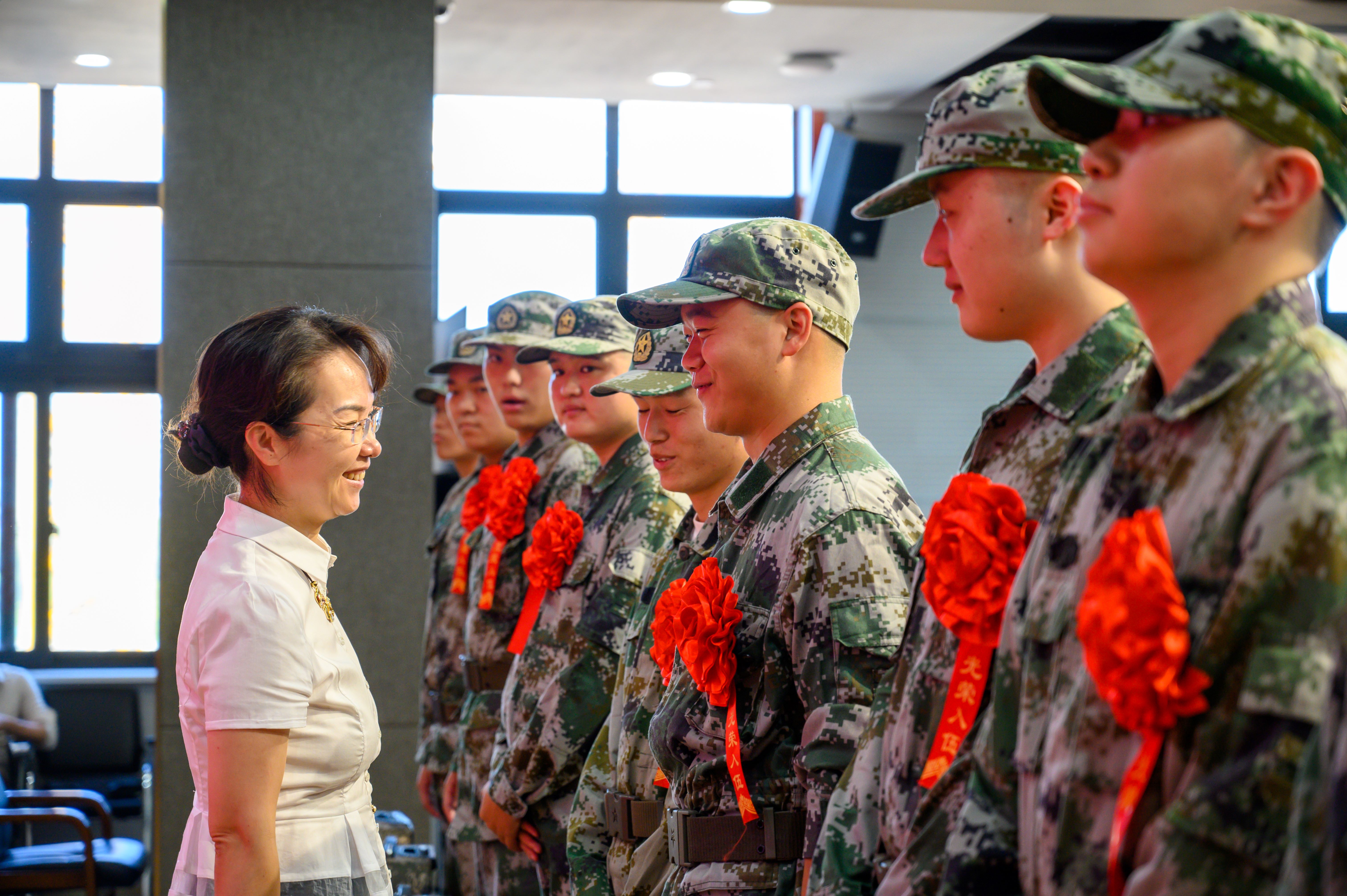 校、院领导们为全体预定新兵佩戴大红花并赠送纪念品,同新兵和家长代表们进行亲切交谈。会上,职业技术学院征兵站站长庞雪雅老师代表学校老师发言,她祝福入伍新兵在军旅生活中建功立业谱写人生新篇章。入伍新兵周星宇代表全体新兵发言,他表示要牢记“感恩、回报、爱心、责任”八字校训,争做“四有”军人,投身保卫祖国的神圣使命中去。