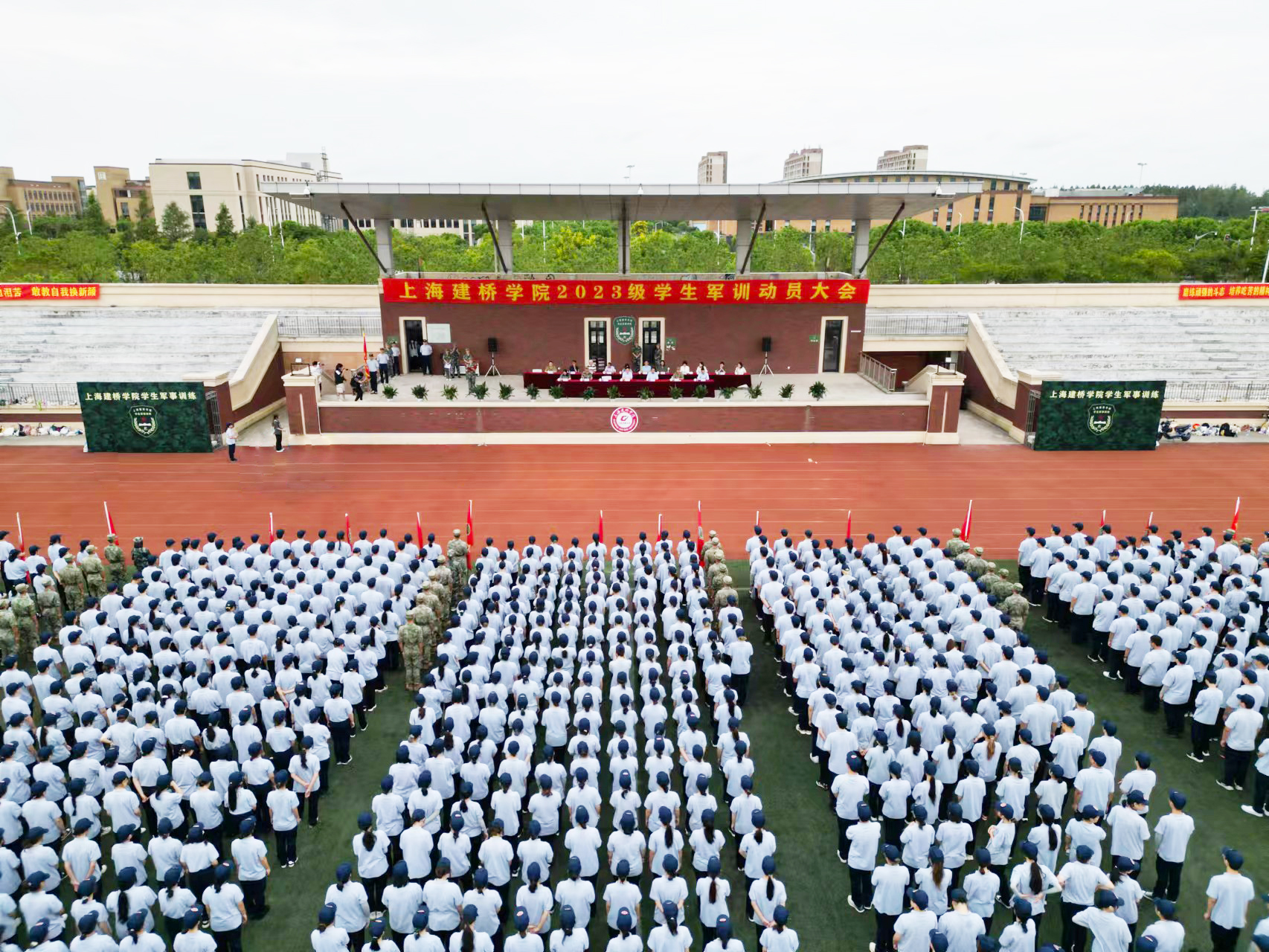 9月13日,上海建桥学院在体育场举行2023级学生军训动员大会。校长朱瑞庭,党委书记江彦桥,副校长陈伟,相关职能部门领导、各二级学院领导、军训教官及全体23级新生参与。本次大会由军训旅政委、副校长陈伟主持。