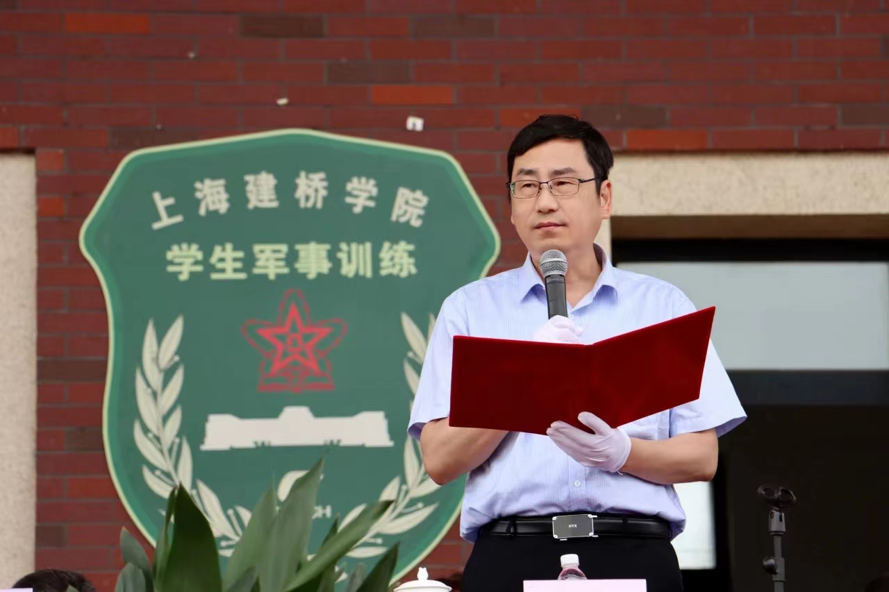 最后,校党委书记江彦桥作军训动员讲话。江书记表示,军训是贯彻《国防教育法》和《兵役法》、落实全民国防的重要体现,是学生接受国防教育、追求强国强军梦的重要载体,也是同学们进入大学后的第一堂必修课。通过军训,使学生的国家安全意识、组织纪律意识和集体主义观念得到强化,引导青年学生主动历练本领,扛起时代责任,用青春告白伟大祖国,用奋斗谱写人生华章。