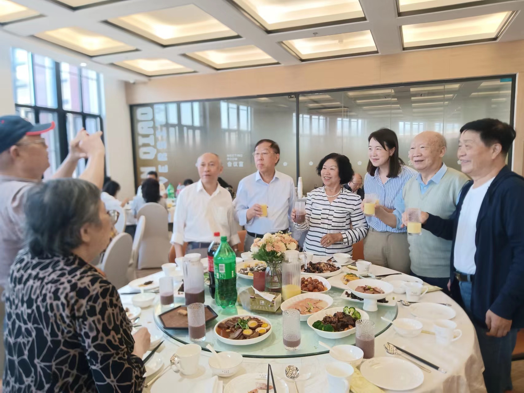 原校党委书记蒋威宜向大家分享了由她作词的MV《启航》获奖的好消息,并现场朗诵了她创作的诗作《春之建桥》,表达了对学校的浓厚感情。会场为老同志们准备了2022年重阳节返校的大合照,老同志们倍感温暖,与校领导们握手寒暄,与老朋友们拥抱叙旧,会场一片热闹非凡、其乐融融的景象。