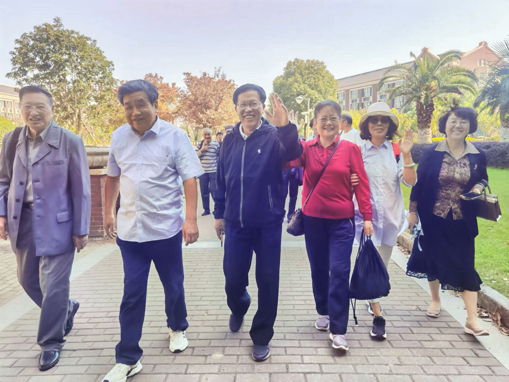 会议结束后,大家一同合影留念。学校工会还特意为每位老同志发放了点心礼盒和纪念卡等。下午,老同志们在各分工会的带领下,徜徉在美丽校园,开展了联欢会、茶话会等丰富多彩的活动。