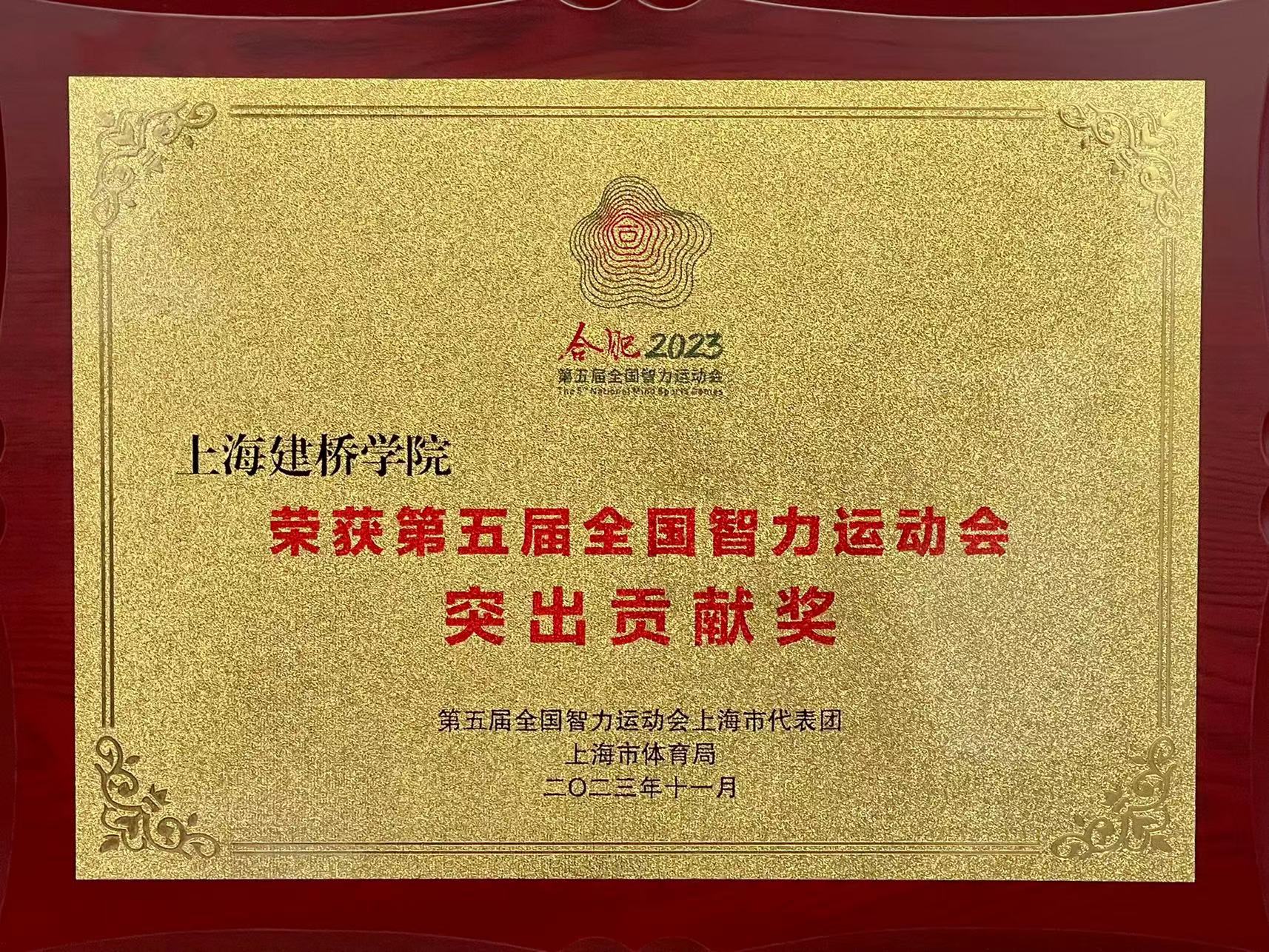 近日,第五届全国智力运动会上海市代表团在上海棋院召开总结表彰大会,上海建桥学院获“突出贡献奖”(单位)。