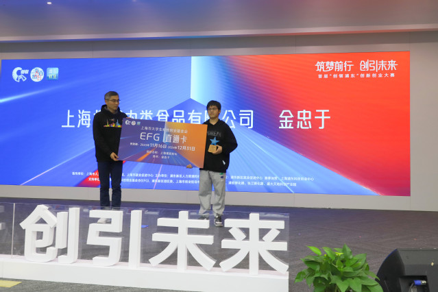 2023年浦东新区首届“创领浦东”创新创业大赛于11月16日在浦东软件园举办颁奖典礼。商学院电子商务专业的金忠于同学凭着创业项目——“上海槿初和牛”在“大学生新势力”赛道中获得三等奖的好成绩。在颁奖典礼上,金忠于同学作为唯一的大学生创业代表获得上海市大学生科技创业基金会直通卡。