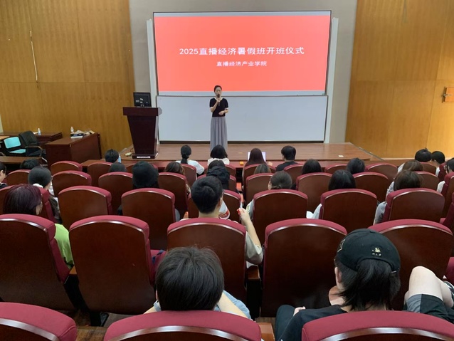 7月5日,上海建桥学院直播经济产业学院主办的“2025直播经济实战赋能暑假班”正式开课。课程以 “教室直播间一体化” 的创新模式,重塑直播人才培养范式。40余名跨专业学员齐聚三教222教室,开启了为期60天的沉浸式实战学习。