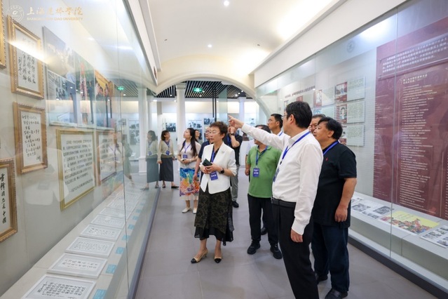 会议间歇,朱瑞庭校长带领专家学者参观了上海建桥学院雷锋馆、国政馆等红色教育基地,并介绍了学校的办学历程、党建思政、人才培养、产教融合等情况。