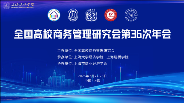 全国高校商务管理研究会第36次年会于2025年7月27-28日在上海顺利举行。本次年会由全国高校商务管理研究会主办,上海大学经济学院和上海建桥学院联合承办、上海市商业经济学会协办。来自东北财经大学、贵州财经大学、河北经贸大学、河南牧业经济学院、江苏大学、江西财经大学、闽南师范大学、南京财经大学、内蒙古财经大学、内蒙古师范大学、山东财经大学、山东工商学院、山西财经大学、上海大学、上海建桥学院、天津财经大学、中央财经大学等23所高校40余名专家学者出席了会议。本次年会主题为“数字经济与商务管理变革”,围绕数字经济与商务管理变革领域的前沿议题,来自全国高等院校商务管理研究领域的专家和青年学者展开多维度、深层次研讨。