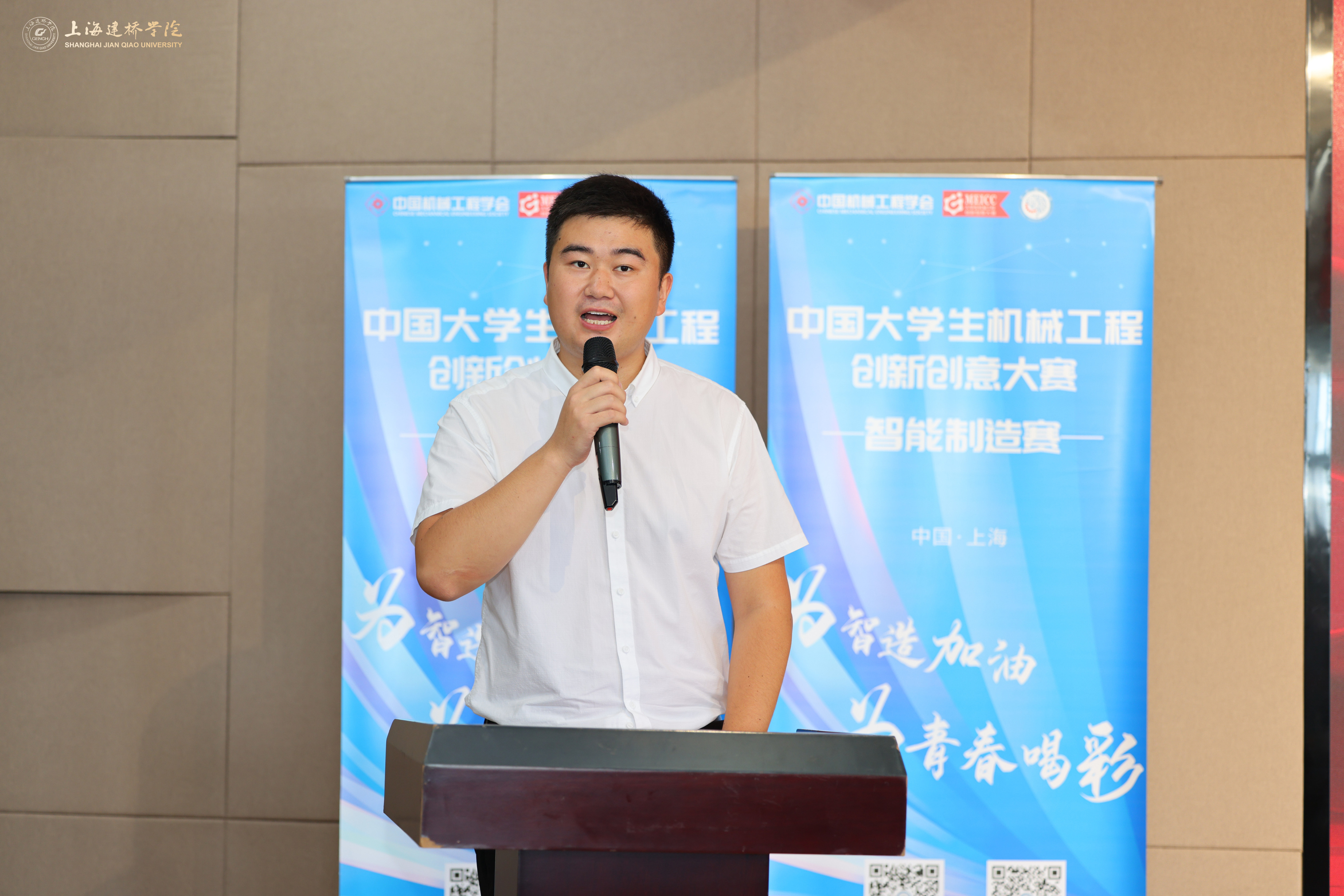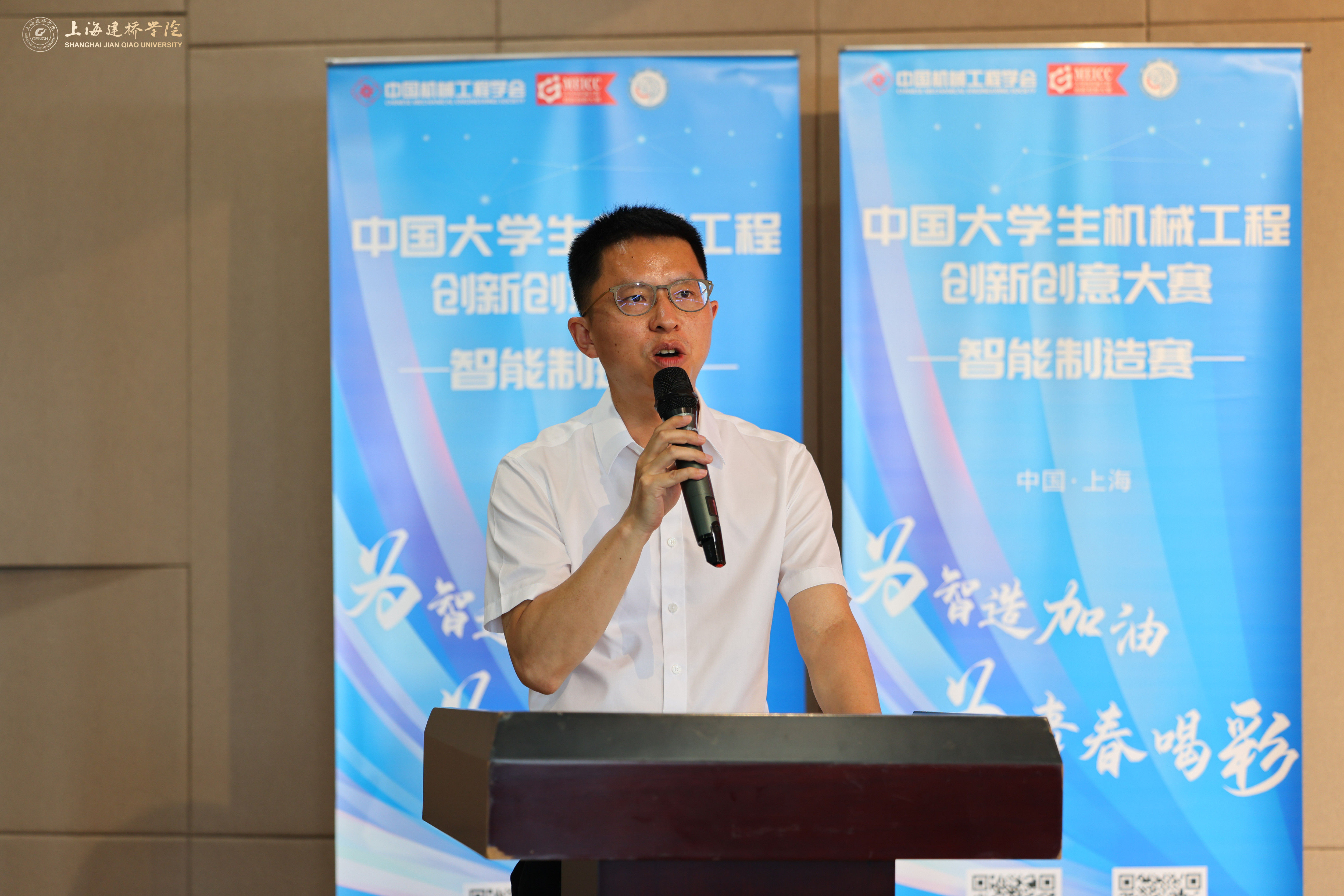 上海建桥学院常务副校长张震代表承办方发言。他表示,承办此次国赛不仅是对学校办学实力和组织能力的一次重要检验,更是深化产教融合、探索“以赛促建、以赛促教”人才培养模式的宝贵实践。希望通过搭建这样的平台,激发学生的创新潜能,强化学生的工程实践能力。学校也将以此次大赛为契机,继续扎根临港,为服务国家智能制造战略发展贡献力量。