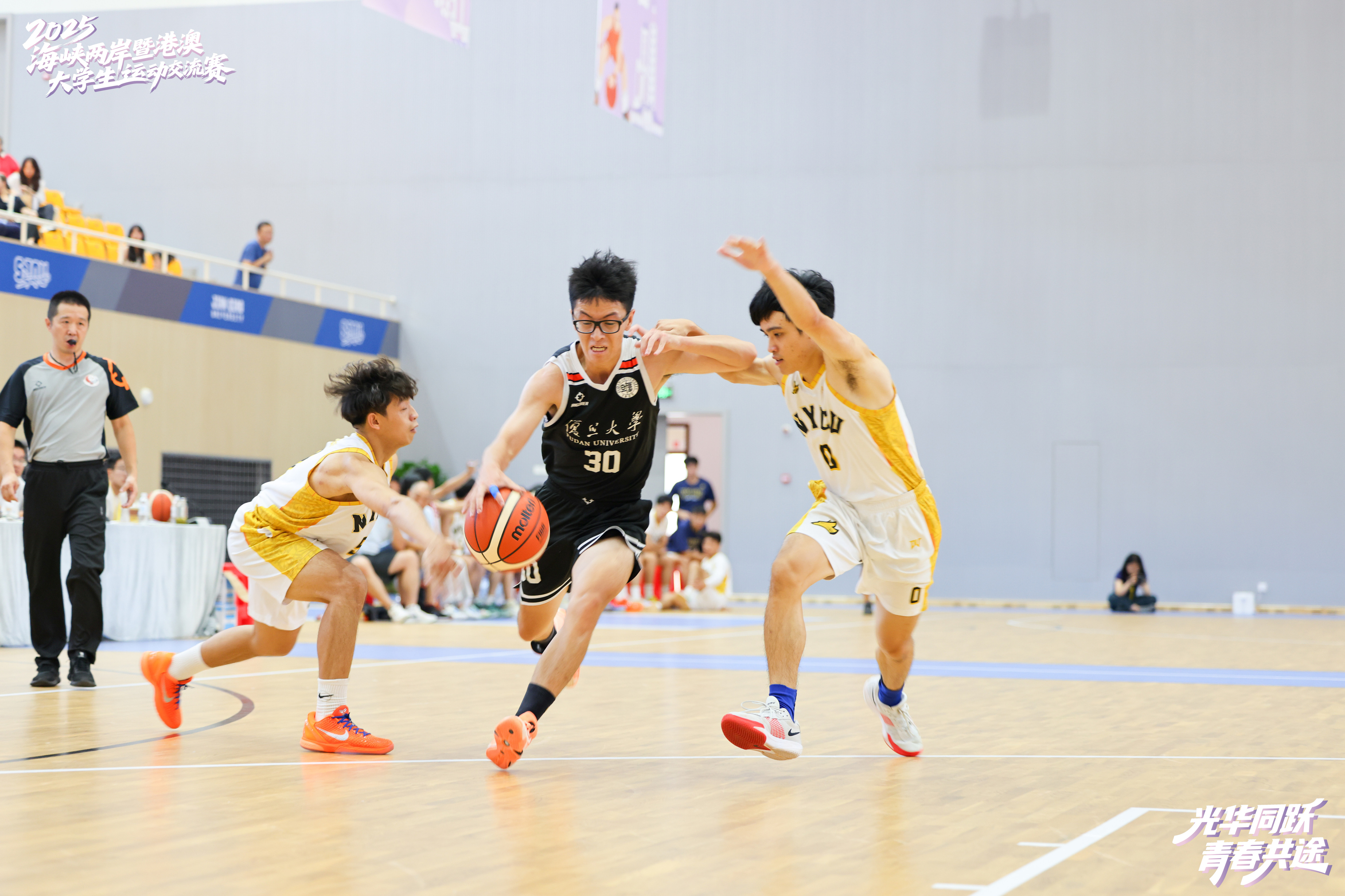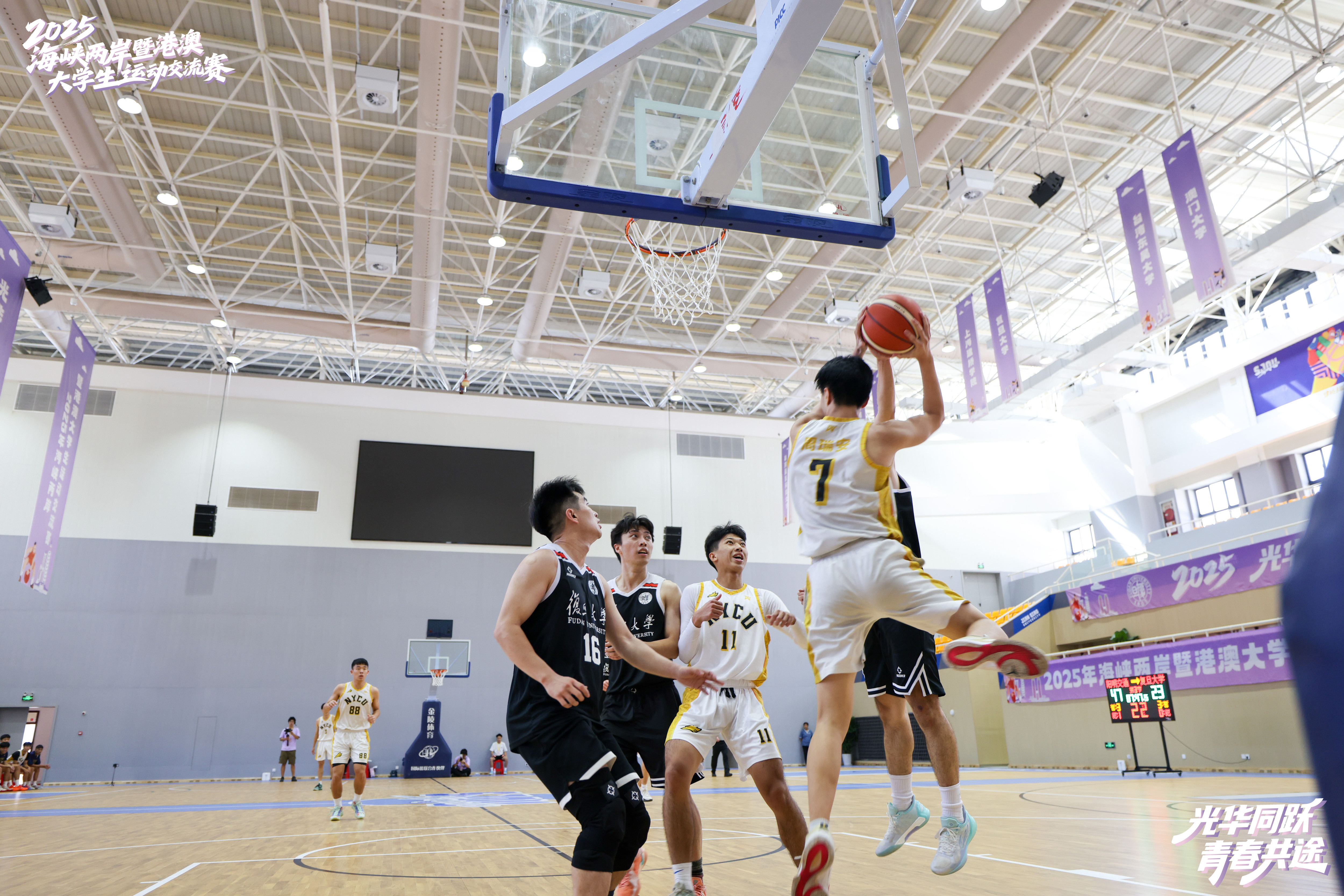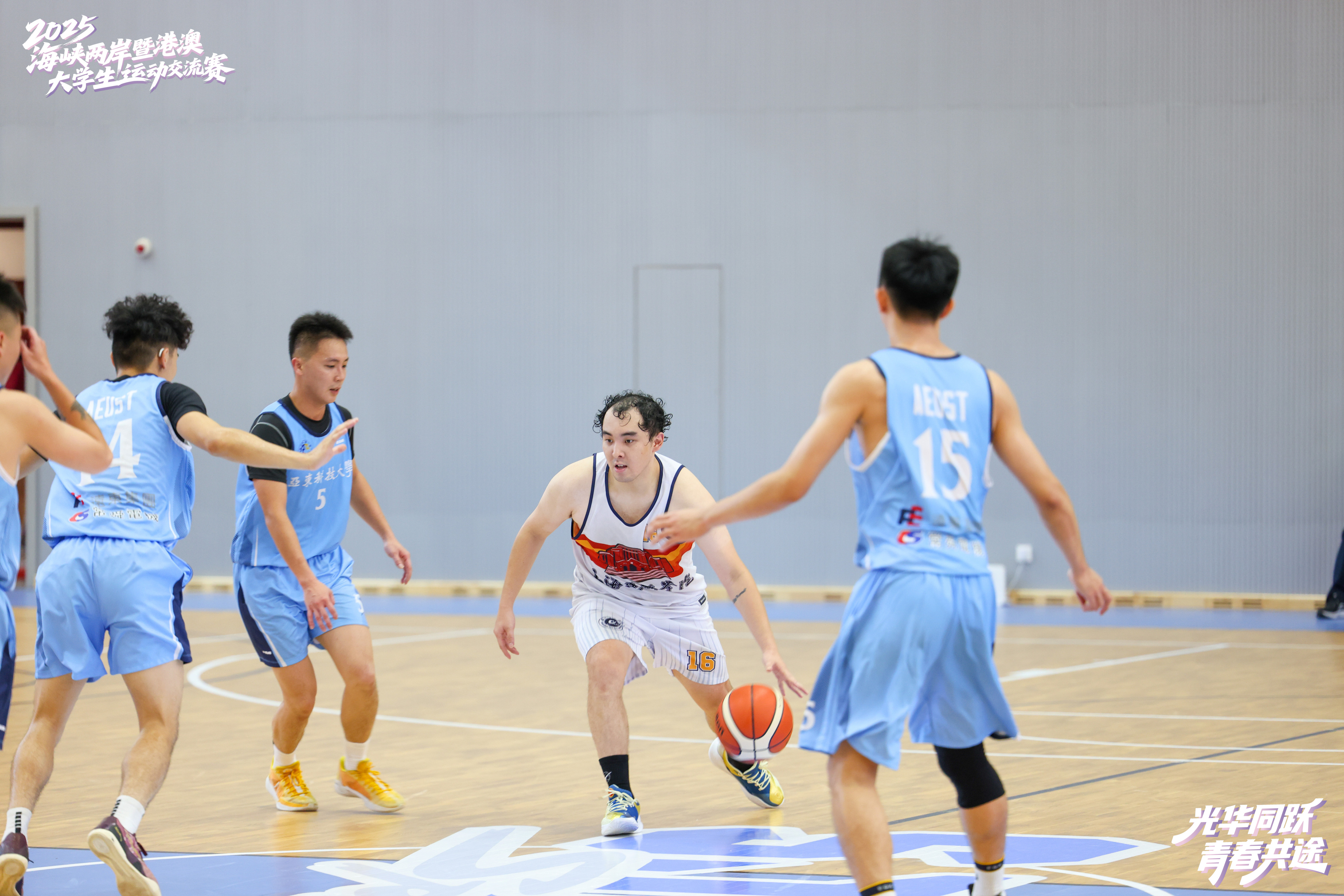 8月20日,上海建桥学院体育馆内洋溢着青春的活力与激情。在上海建桥学院董事长赵东辉一记精彩的开球之后,由复旦大学、上海建桥学院、上海电机学院和台湾东吴大学等四校联合主办,以“光华同跃、青春共途”为主题的2025年海峡两岸暨港澳大学生运动交流赛正式拉开帷幕。来自海峡两岸和港澳地区10所高校的运动员齐聚上海临港滴水湖畔,以体育为媒,共赴一场充满活力与友谊的夏日盛会,参加交流赛的同学们在比赛中增进情谊、收获成长。